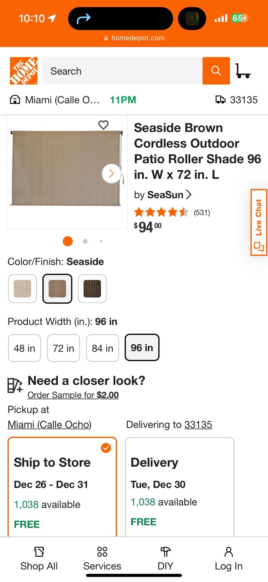 2 Brown Cordless Outdoor Patio Roller Shade 96in. W x 72 in. L