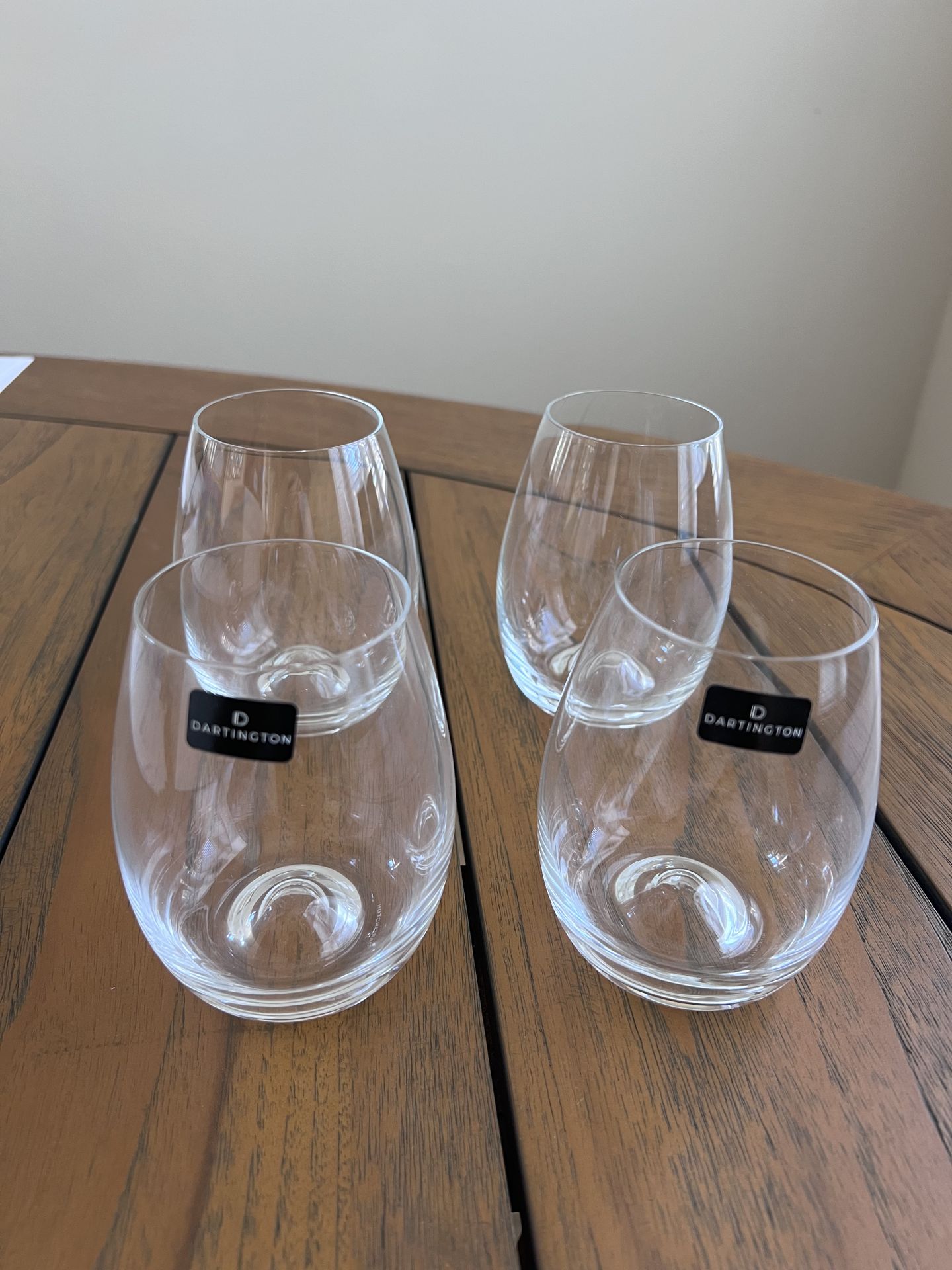 Consider these stemless Dartington Solo crystal wine glasses. They are 4.5 inches high and can hold (if you like your wine) up to 12 ounces. Now that’s a pretty big pour! At $3 apiece that’s cheaper than Marshall’s.