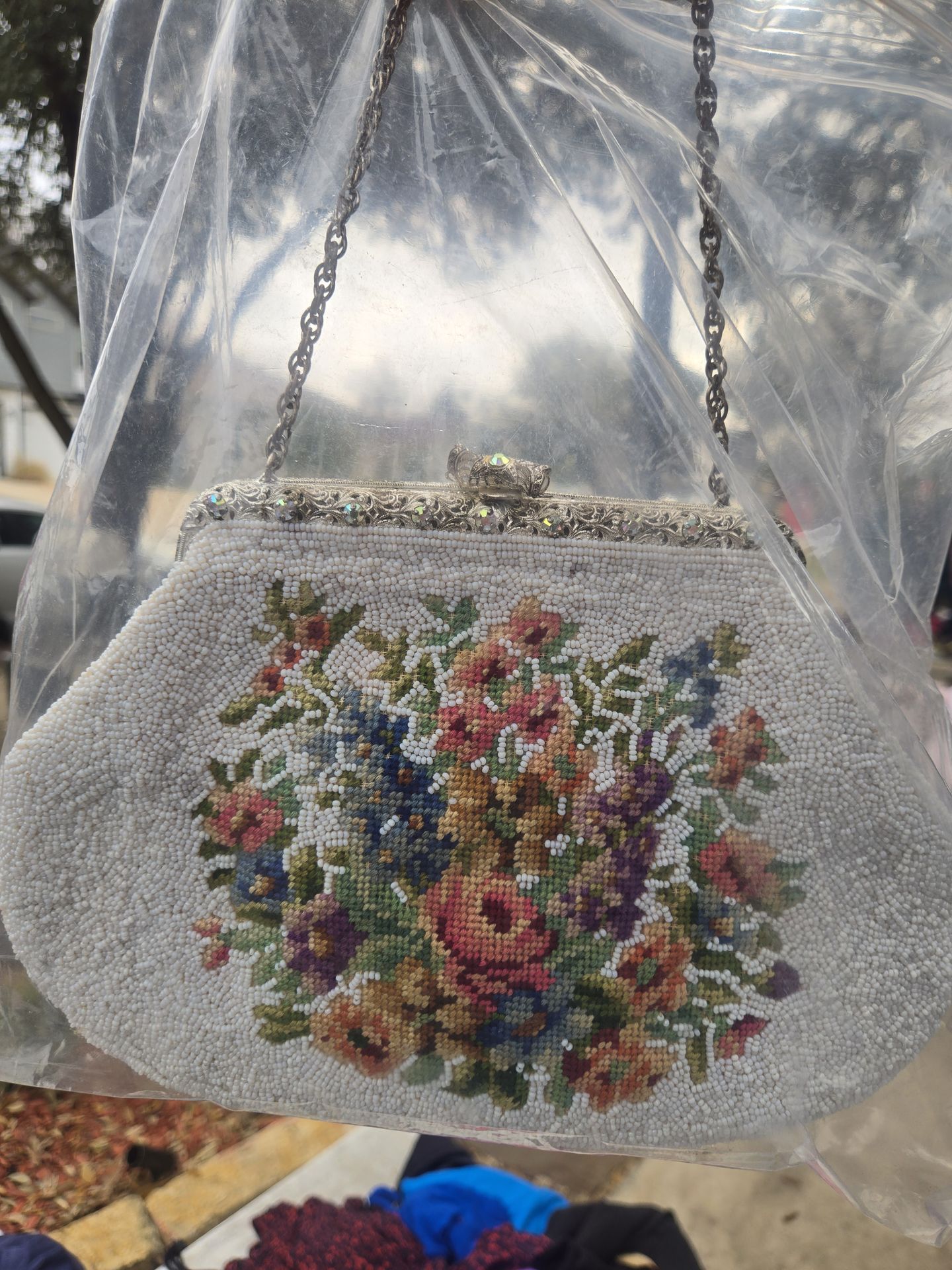 Vintage custom needle point bag, with hand made handkerchief.