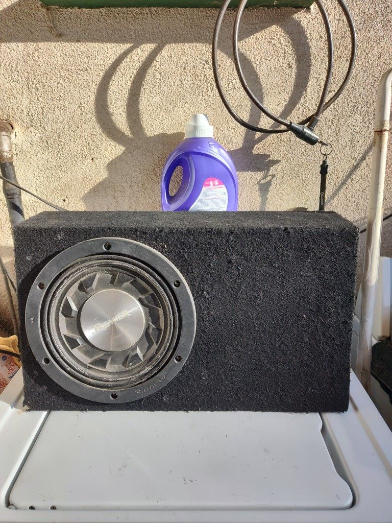 Pioneer premier shallow/pancake sub single 4 ohm working very good comes with ported box very small perfect for small space like behind the seat of a truck or anywhere with limited space