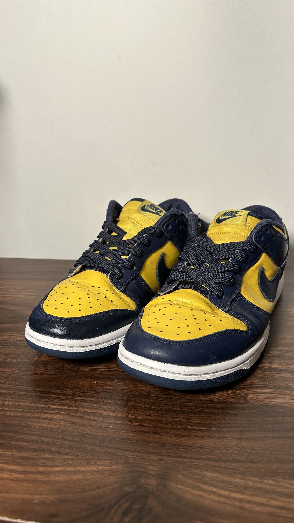 I have a used Nike Dunk Michigan lows. Mens 8.5 and comes with no box. At the end I have put the authentication from legit check. Meet in fountain valley/ Huntington Beach, cash only
