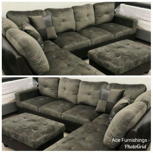 Brand New Charcoal Gray Microfiber Sectional With Storage Ottoman