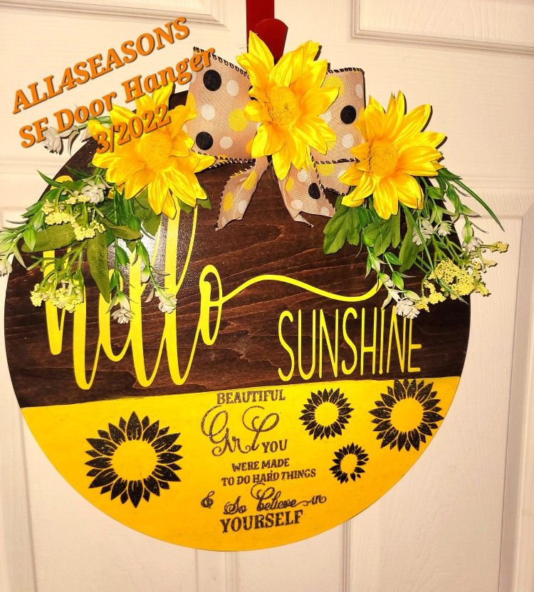 Custom made 18" sunflower door hanger. I can customize any anyone that you prefer. If you have a specific style you'd like I could make it for you. Must be to appreciate it..