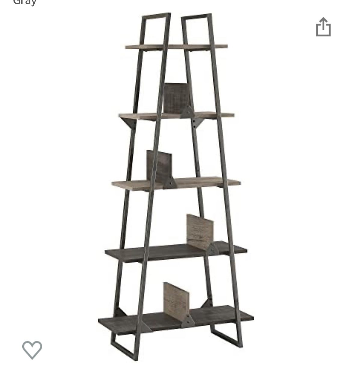 Unique and attractive a frame bookshelf design 5 fixed shelves provide Plenty of space for decorating or organization 4 dividers are free moving and can be Placed on any shelf in any location Includes tip-over restraint strap for safety Distressed rustic Gray Finish and Charred wood accent shelves create an appealing weathered look
