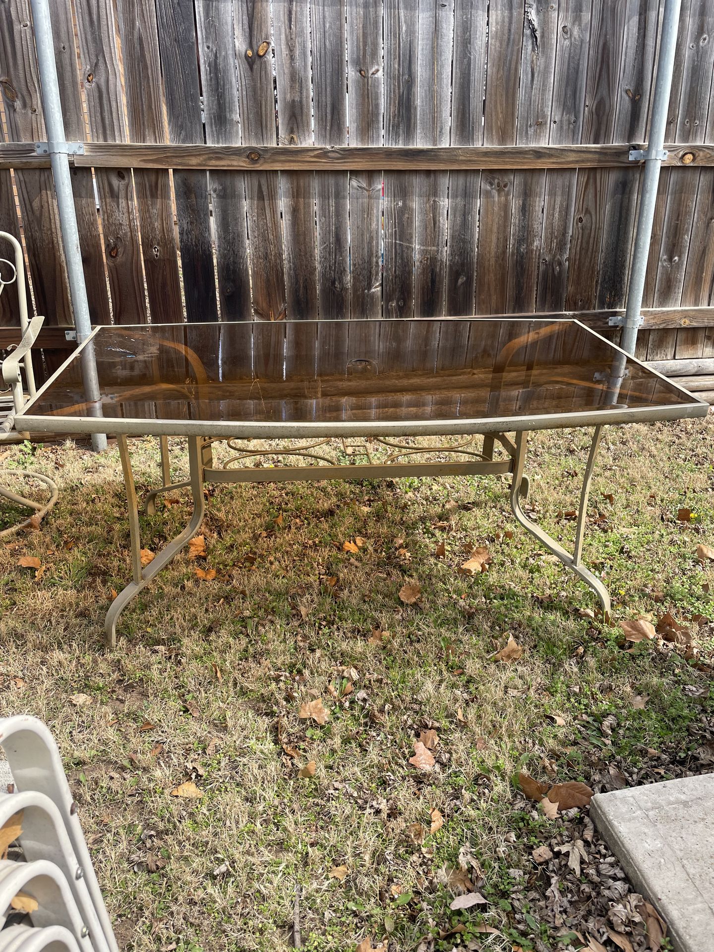 Used patio table with 6 chairs. There is a little rust on some parts of some chairs