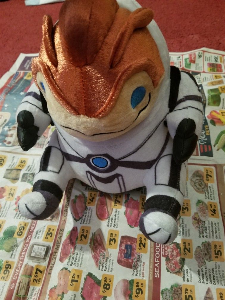 Mass effect grunt plush collector's plush with tags and collector's card by bioware, sanshee and ea. Mostly used as a display. About 9 inches. A couple dot like marks on back barely noticable. Otherwise like new condition. Selling $40 final sale.