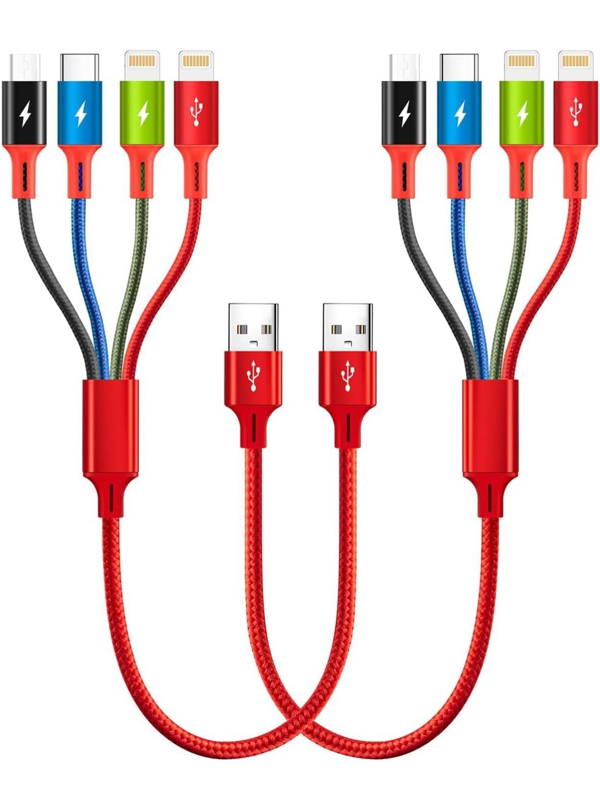 4 in 1 Fast Charging Cables 2 Pack Nylon Multi Device Cord