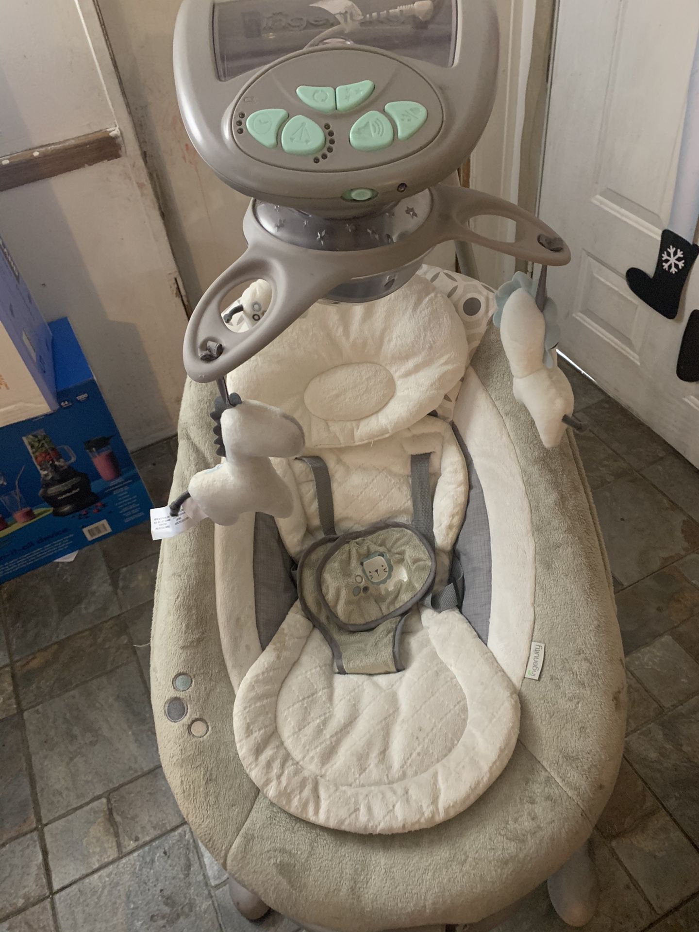 ingenuity baby swing in excellent conditions my baby only used it for a month everything works great and its detachable to use it as a bouncer/ vibrator. pick up only $80
