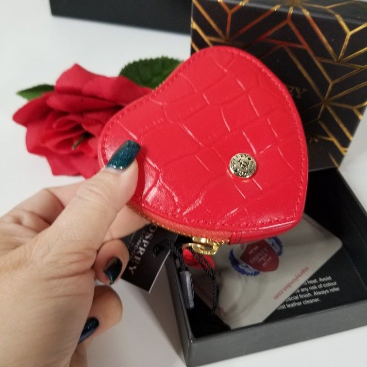 Osprey London Red Leather Heart Coin Purse New in Gift Box