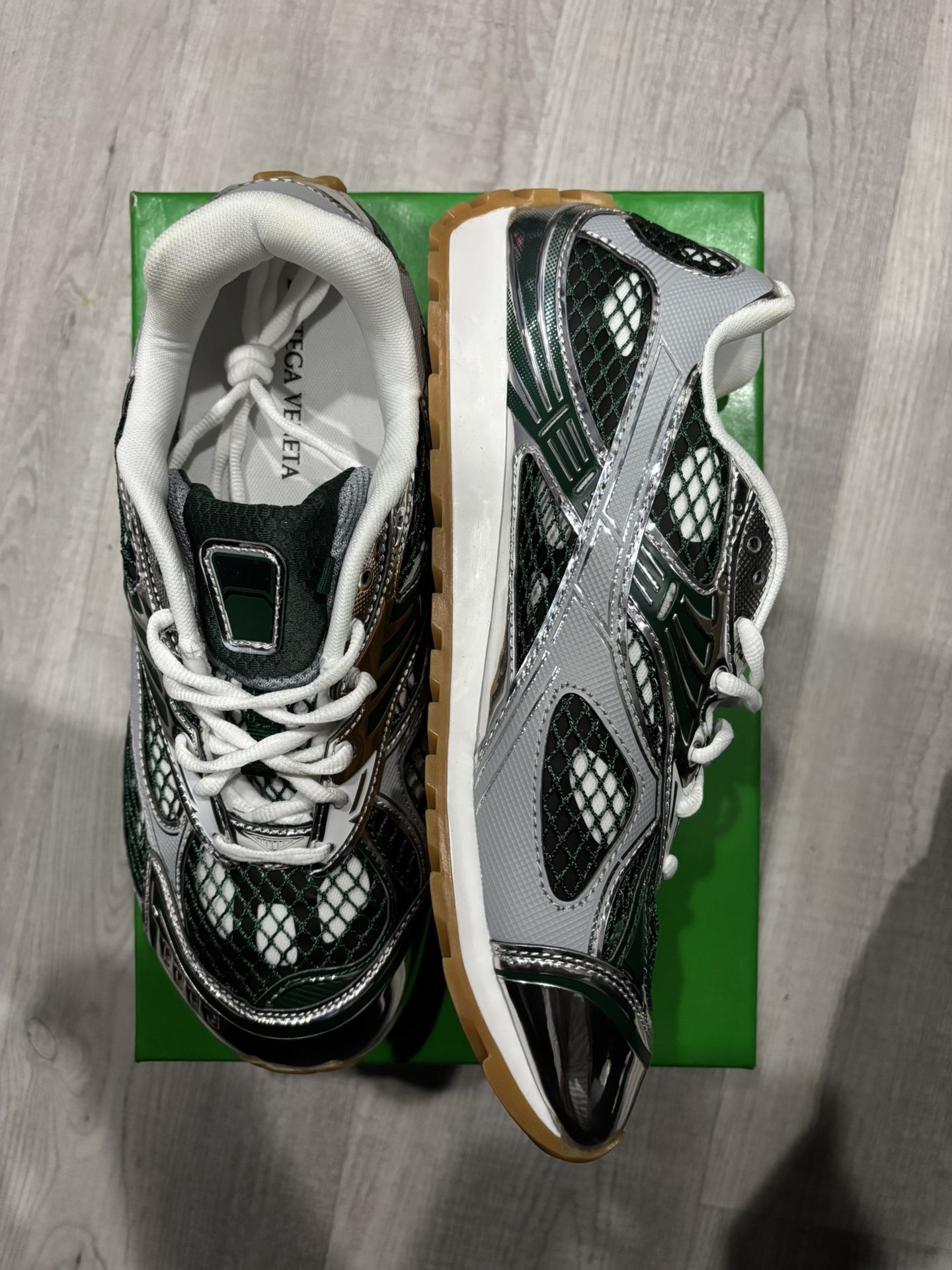 Green and black bottega ventorbits. OBO Size 44 or a size 10-11 Shoes come with a box Dust bag Come with everything also have the shopping bag Never worn No flaws 100% ready DM if interested-Serious buyers only #bottegaveneta #orbitssneaker #designer