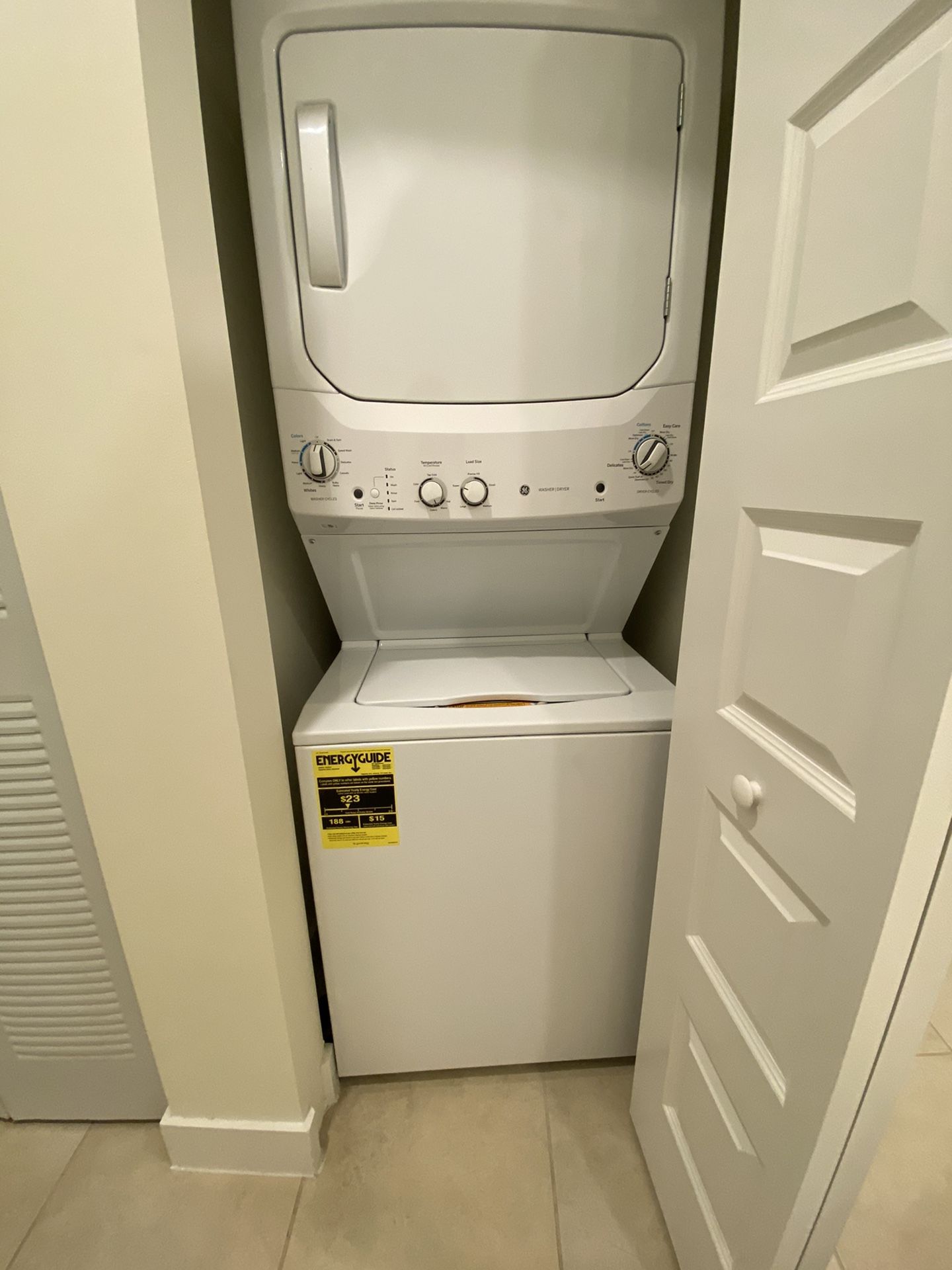 GE - 27" Spacemaker® White Washer/Electric Dryer Combination 3.8 CuFt Washer / 5.9 CuFt Dryer 11 Washer Cycles / 4 Dryer Cycles Auto-Load Sensing With 4 Water Levels 6 Water Temperatures / 4 Heat Selections Rotary-Electromechanical Controls Bleach And Fabric Softener Dispensers Use for six months. Selling it due to laundry room remodel. Works perfectly and in perfect conditions. Normal price at store is $1350-$1400. It has two year warranty.