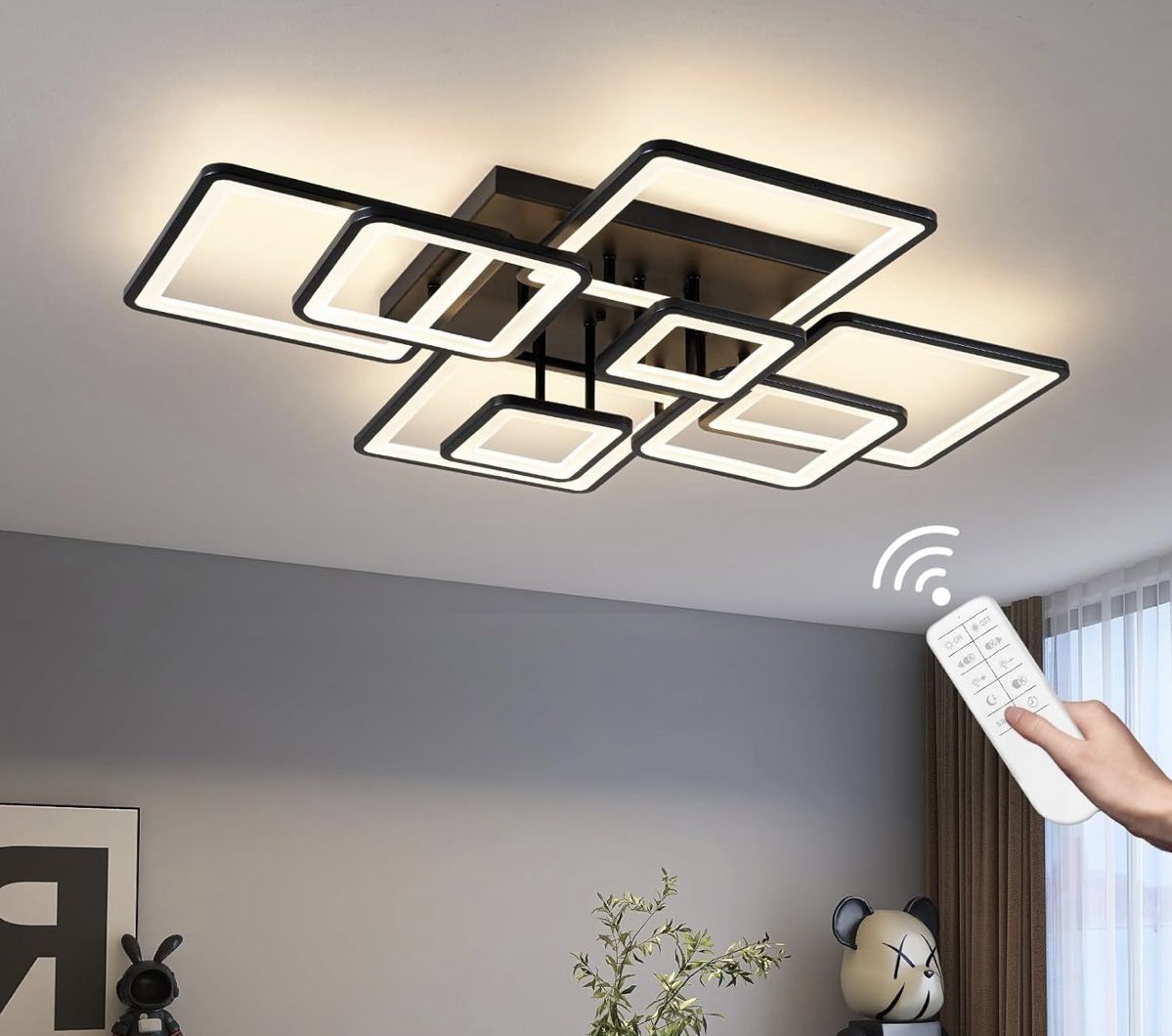 Modern LED Ceiling Light, Dimmable LED Chandelier Black Flush Mount Ceiling Lights, Remote Control