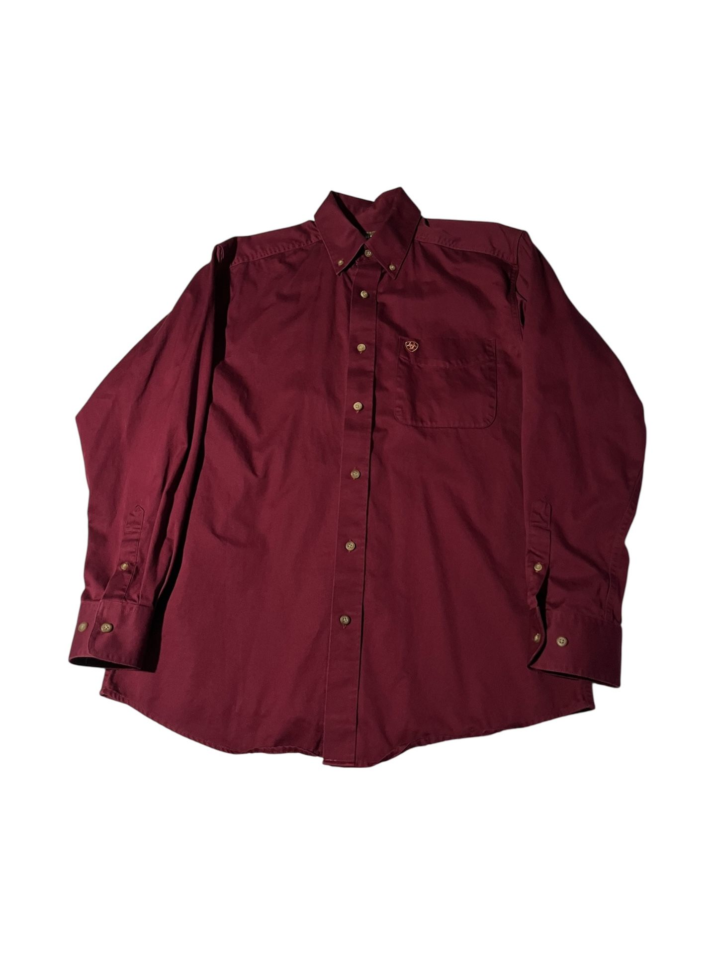 Ariat Solid Twill Classic Long Sleeve Shirt Men’s Medium Burgundy Button Down