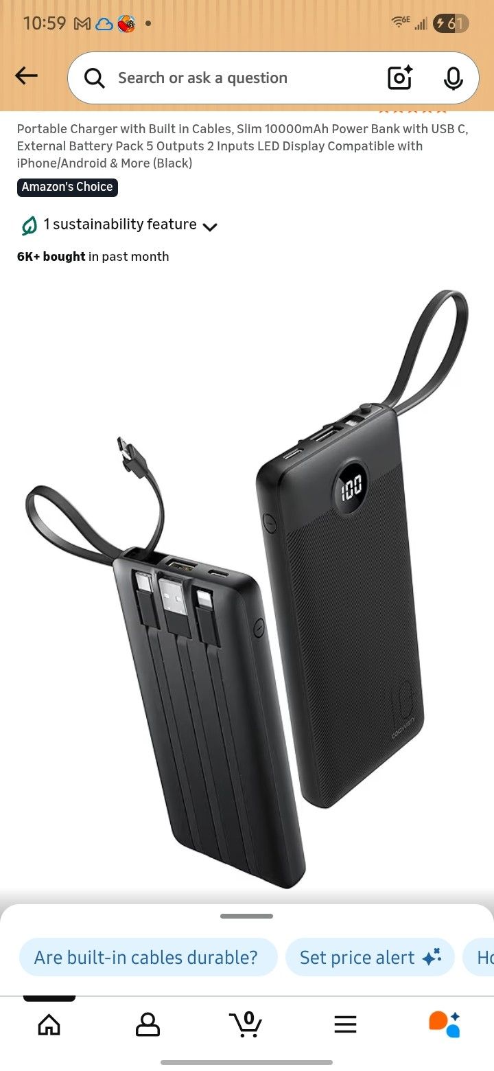 Portable Charger with Built in Cables, Slim 10000mAh Power Bank with USB C