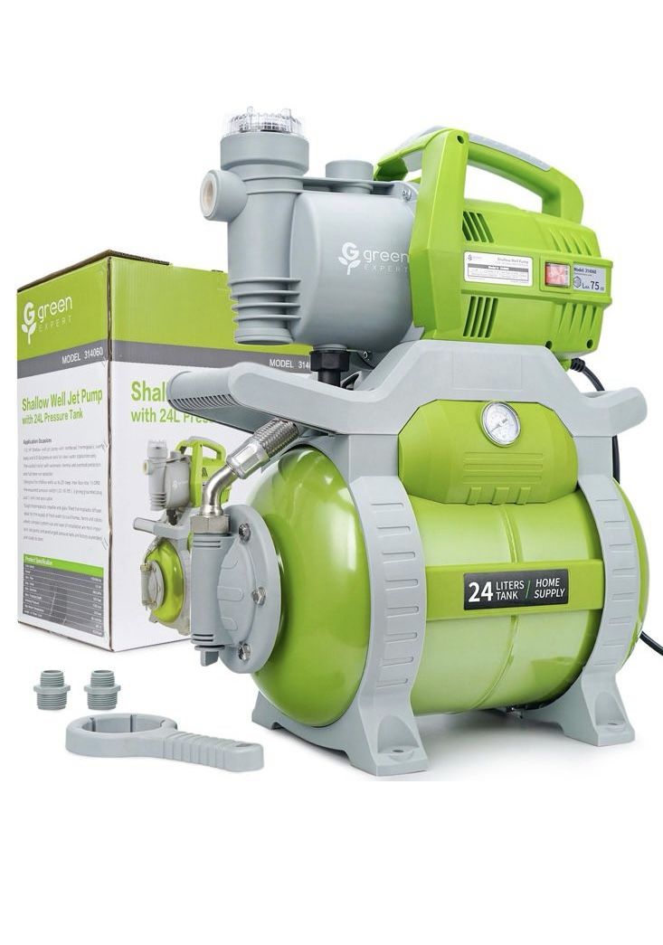 Green Expert 1/2HP Shallow Well Pump Max Head 125FT Unique Filter Design Water Storage Tank Pre-Set 20/45psi Pressure Switch Automatic Booster System for Household Pressurization Garden Irrigation