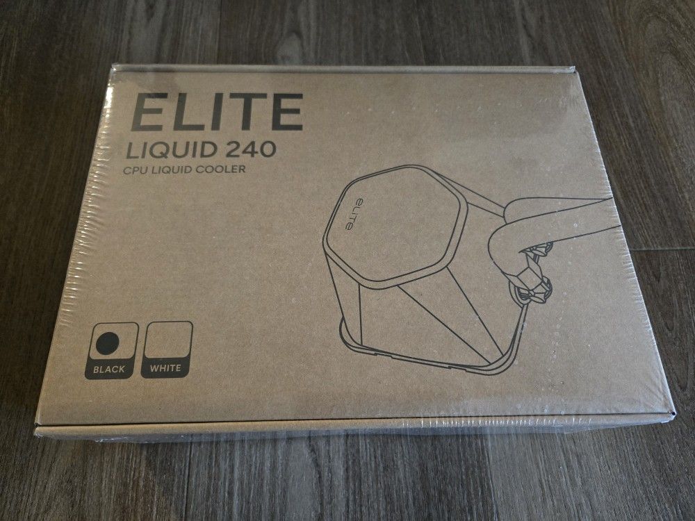Brand new and factory sealed. Cooler Master Elite Liquid 240 Highlights 240mm Aluminum Radiator Supports AMD and Intel LGA Chip Sockets 2 x 120mm ARGB Fans Up to 2100 rpm Fan Speeds Up to 39.5 dBA Noise Level Up to 84.2 CFM Air Flow Dual Chamber Pump Flexible and Customizable Pump Design Pre-Applied CryoFuze Thermal Paste Features Cool your processor and system in style with the Elite Liquid 240 ARGB, a customizable AIO liquid CPU cooler from CoolerMaster. Utilizing two 120mm ARGB fans and a 240mm aluminum radiator, this AIO liquid cooler keeps temperatures down while flexing a unique aesthetic. The 120mm rifle-bearing ARGB fans can reach speeds up to 2100 rpm while staying below a noise level of 39.5 dBA. This cooler also delivers up to 84.2 CFM airflow to ensure optimal ventilation and air circulation. The compact dual-chamber pump features a tool-free, removable top cover and a rotatable inner cap to provide a flexible and customizable appearance. Pre-applied CryoFuze thermal paste makes installation simple, ensuring a clean and mess-free application process. Compatibility Compatible Intel Sockets LGA1851 LGA1700 LGA1200 LGA1150 LGA1151 LGA1155 LGA1156 Compatible AMD Sockets AM5 AM4