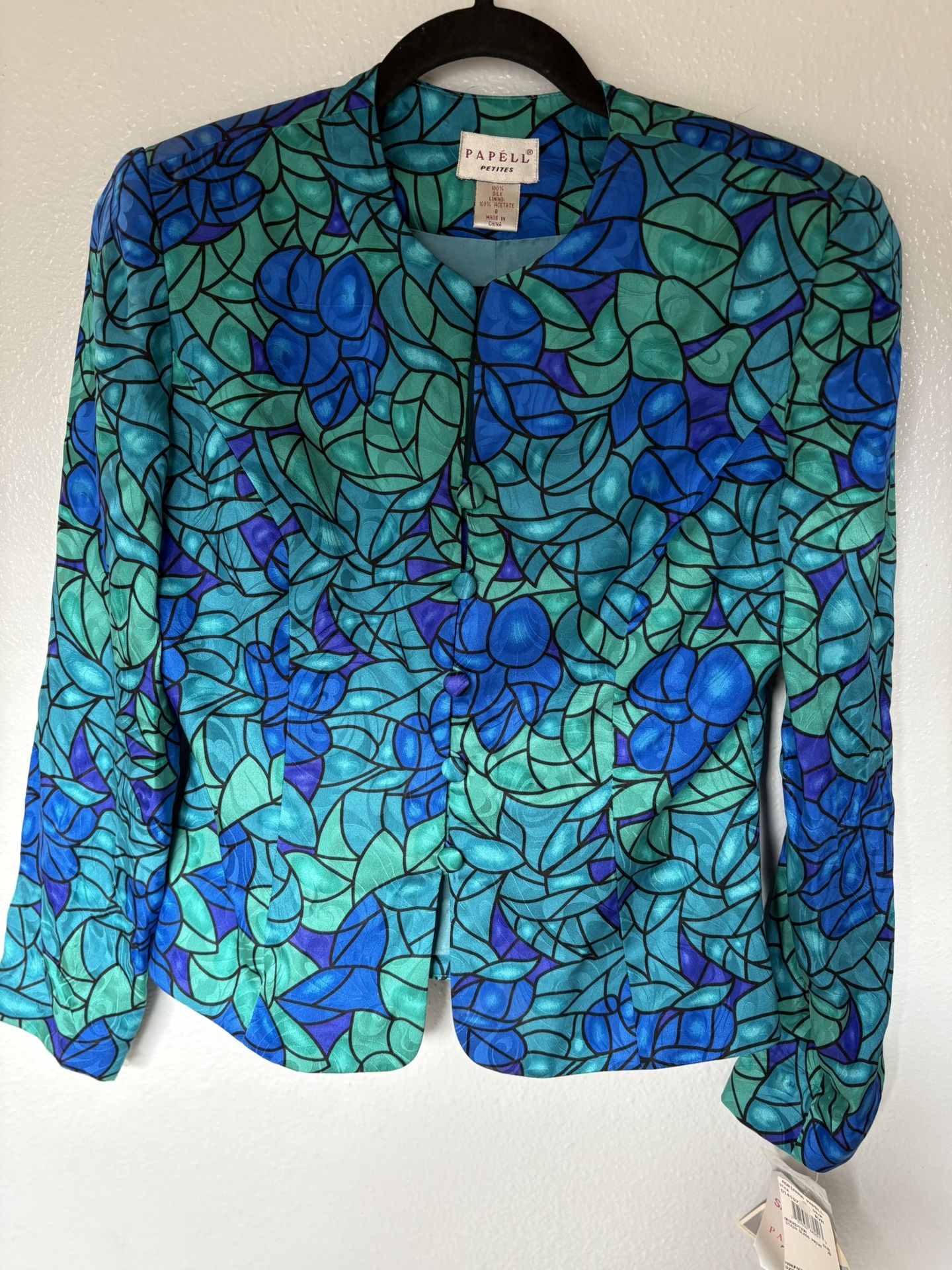 100% Silk Adrianna Papéll Stained Glass Jacket Size 8 Small hole in lining