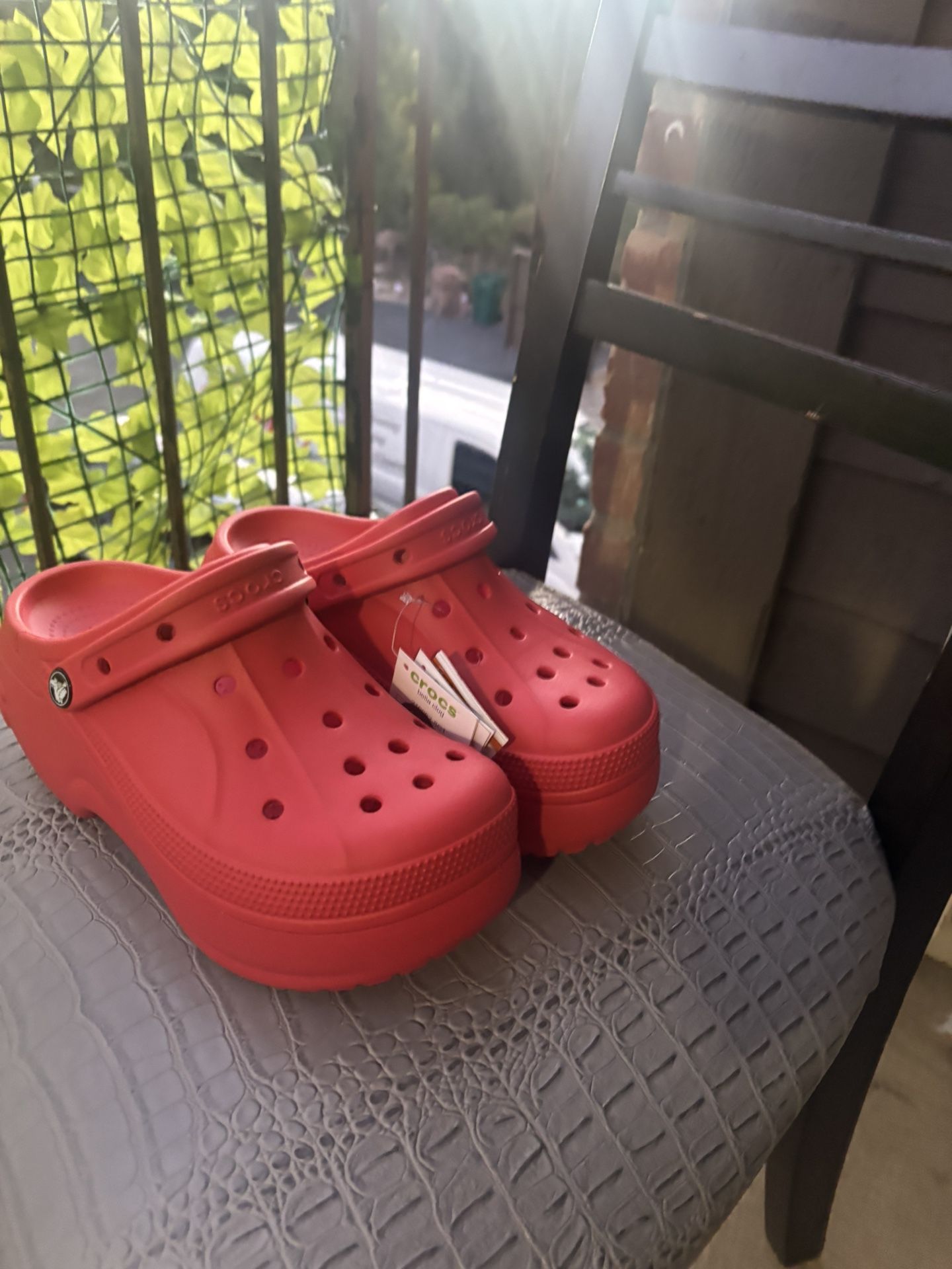 New unused Crocs, classic red color. Size: [put the exact size] 100% original, bought at Ross. Very comfortable and light. I deliver in person in Austin or nearby. Negotiable price