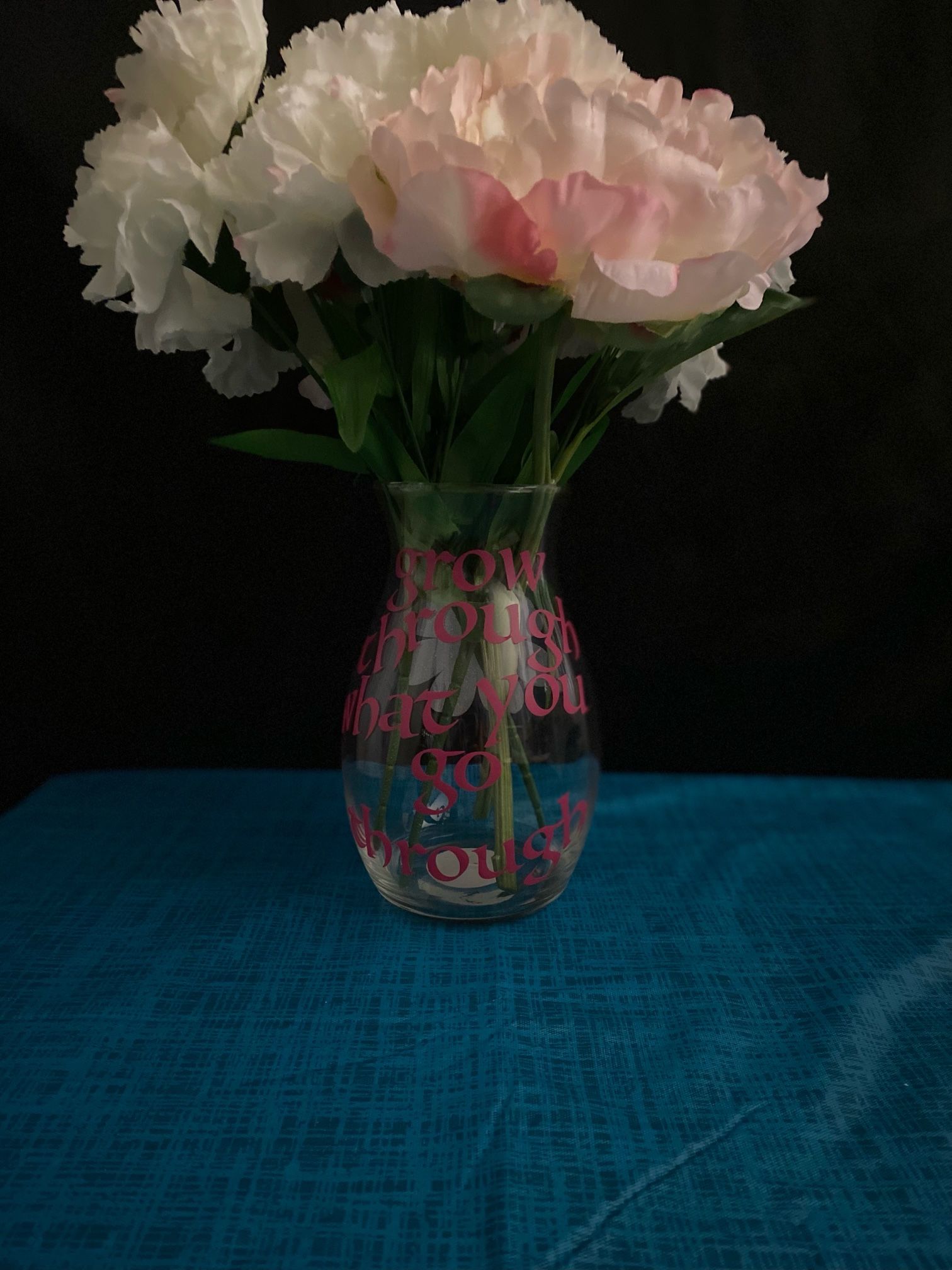 Vase says grow with what you go through