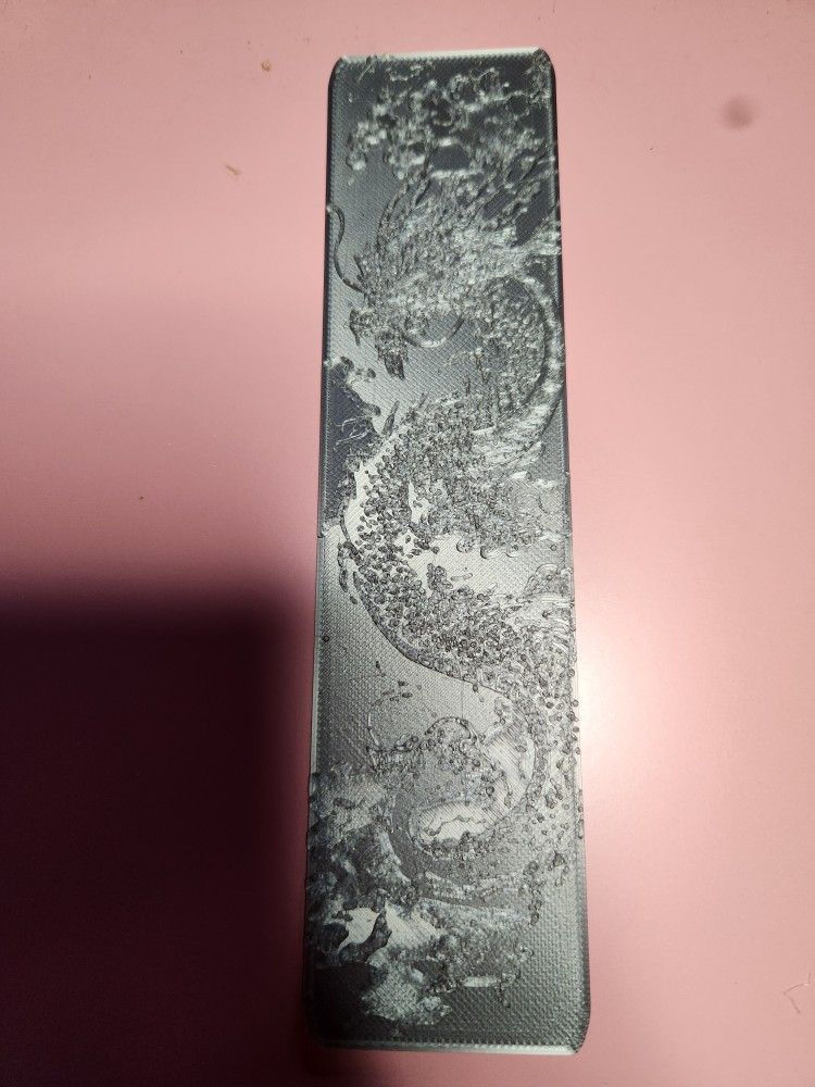 3D printed dragon design bookmarker in Grey. Made with colored filiment. Has something people can talk about. Size is 7" x 1 3/4.