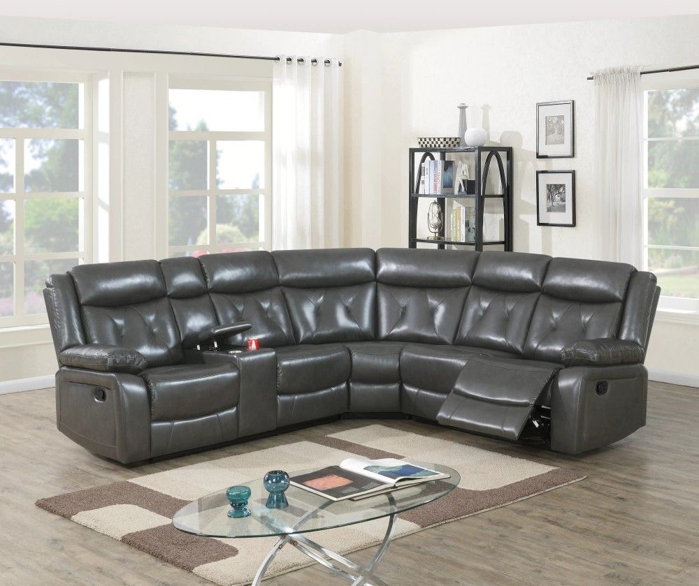 Brand New Grey Leather Reclining Sectional Sofa