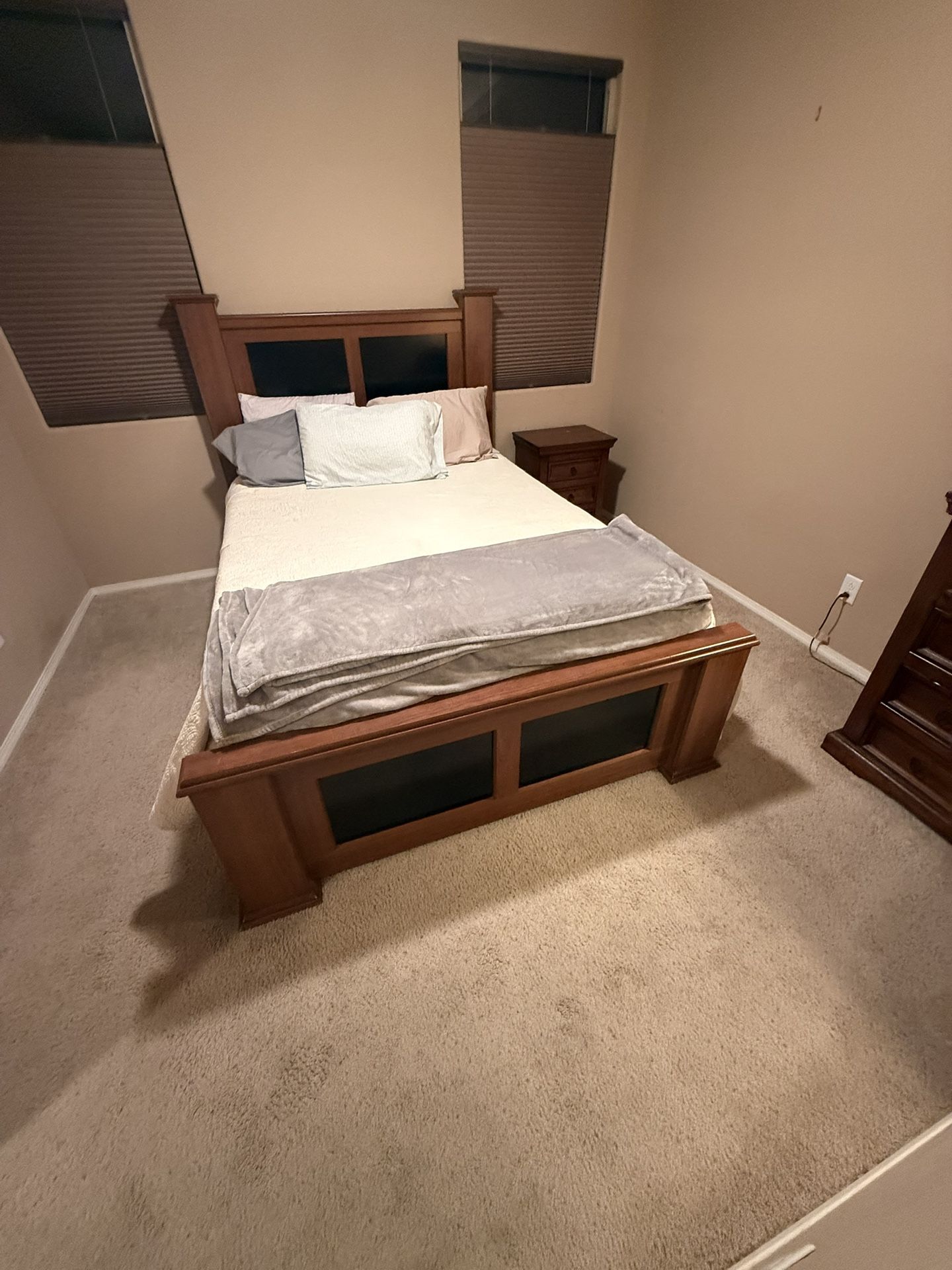 Full size bed frame and Mattress if want in good shape non smoking home guest bedroom elderly lady rarely used!! BEST OFFER!! NEED GONE FAST NO ROOM!!