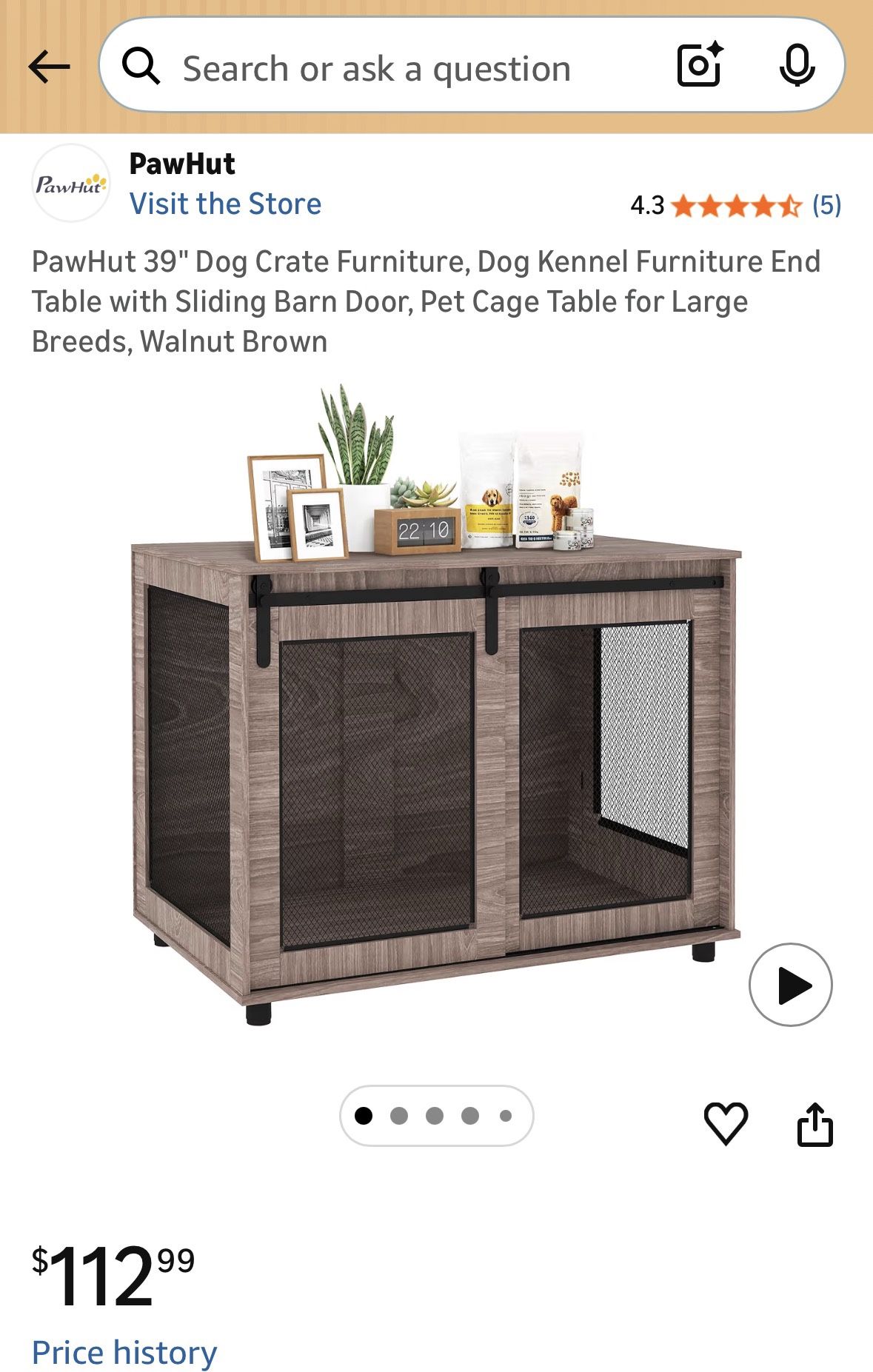 Extra large, unassembled, never been opened, dog crate furniture. The color is Maple. I am firm on the price.