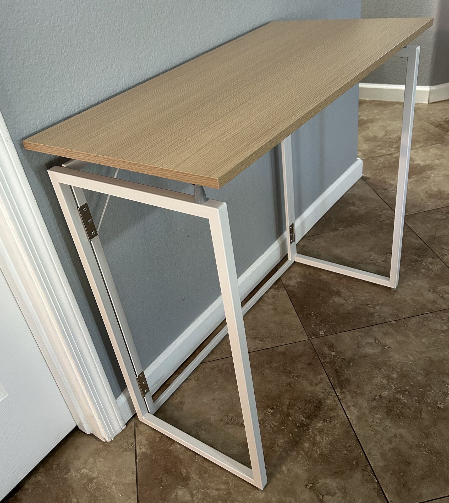 This is a brand new Alawooder beige folding desk that folds down flat for easy storage or transport. Measures 16”D x 32”W x 29”H $40