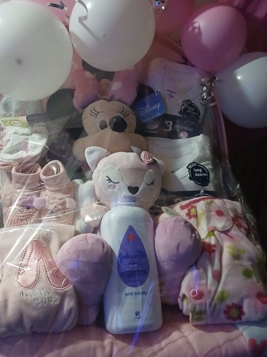 Minnie Mouse Baby bouncer gift for Baby girl birth or Baby shower are just a gift it has Baby clothes, bears and sock and so on serious inquiries only we can meet in a public place if you would like to buy.