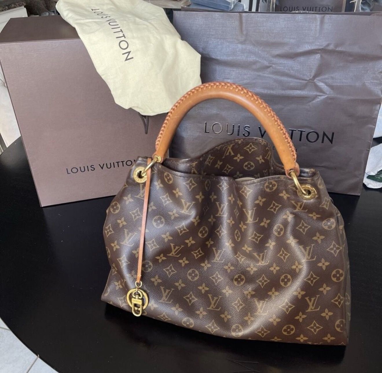 This is an authentic LOUIS VUITTON Monogram Artsy MM. This oversized hobo is crafted of durable Louis Vuitton monogram coated canvas. It shoulder bag features a rolled natural vachetta cowhide leather shoulder strap with a braided accent. The top opens to an ivory microfiber interior with zipper and patch pockets. Not sold anymore in stores! Perfect gift for your lady π Worn just a few times - in Perfect condition. I paid $4,000 Can meet in 19152