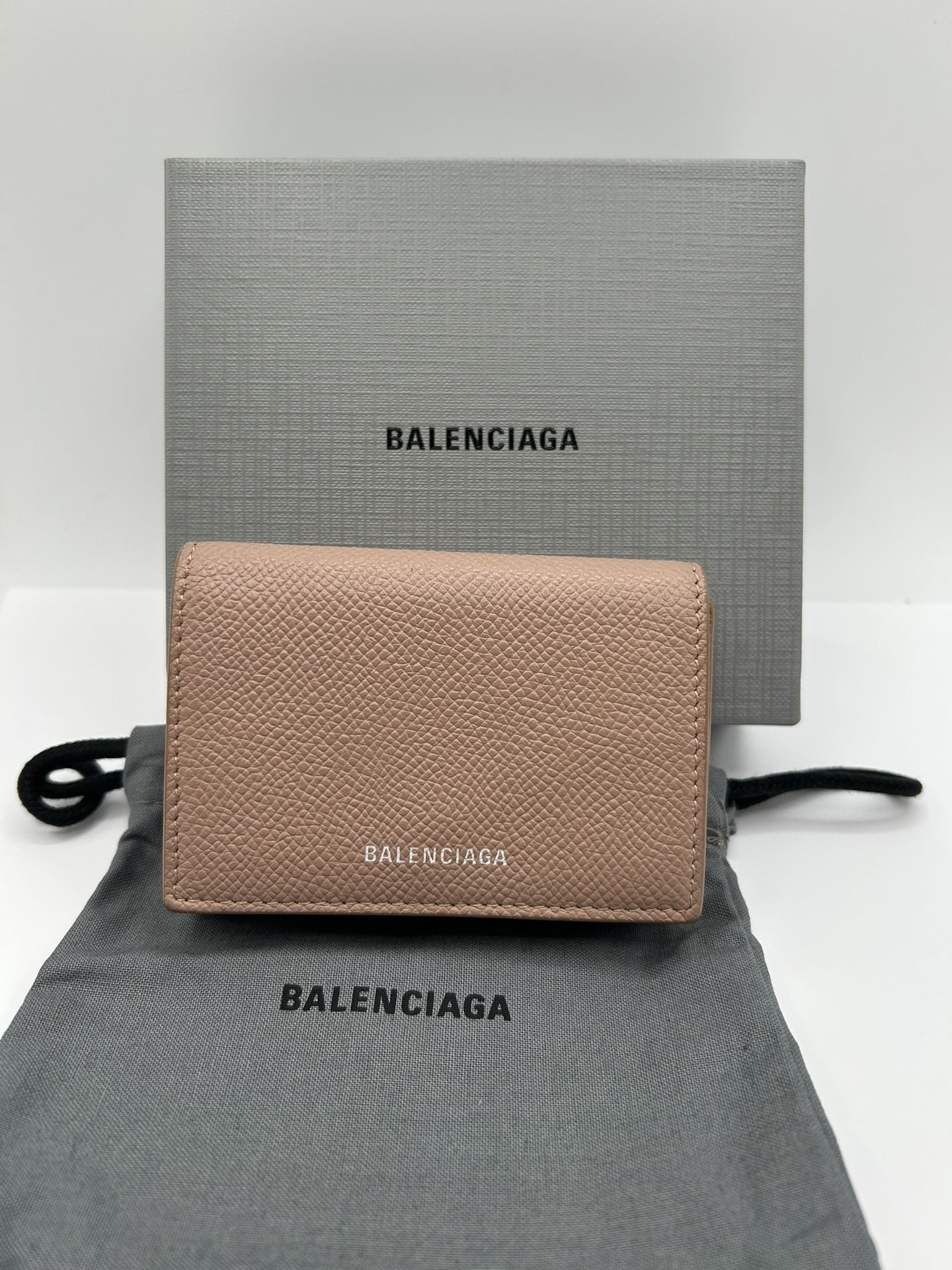 Authentic Balenciaga Trifold wallet Good used condition Normal wear Coin stains and rubs ( 4th photo) With box and dust bag Color: beige Please see pictures and zoom in. Size (approx) Length 9.5 cm / 3.7 inches Height 7 cm / 2.8 inches