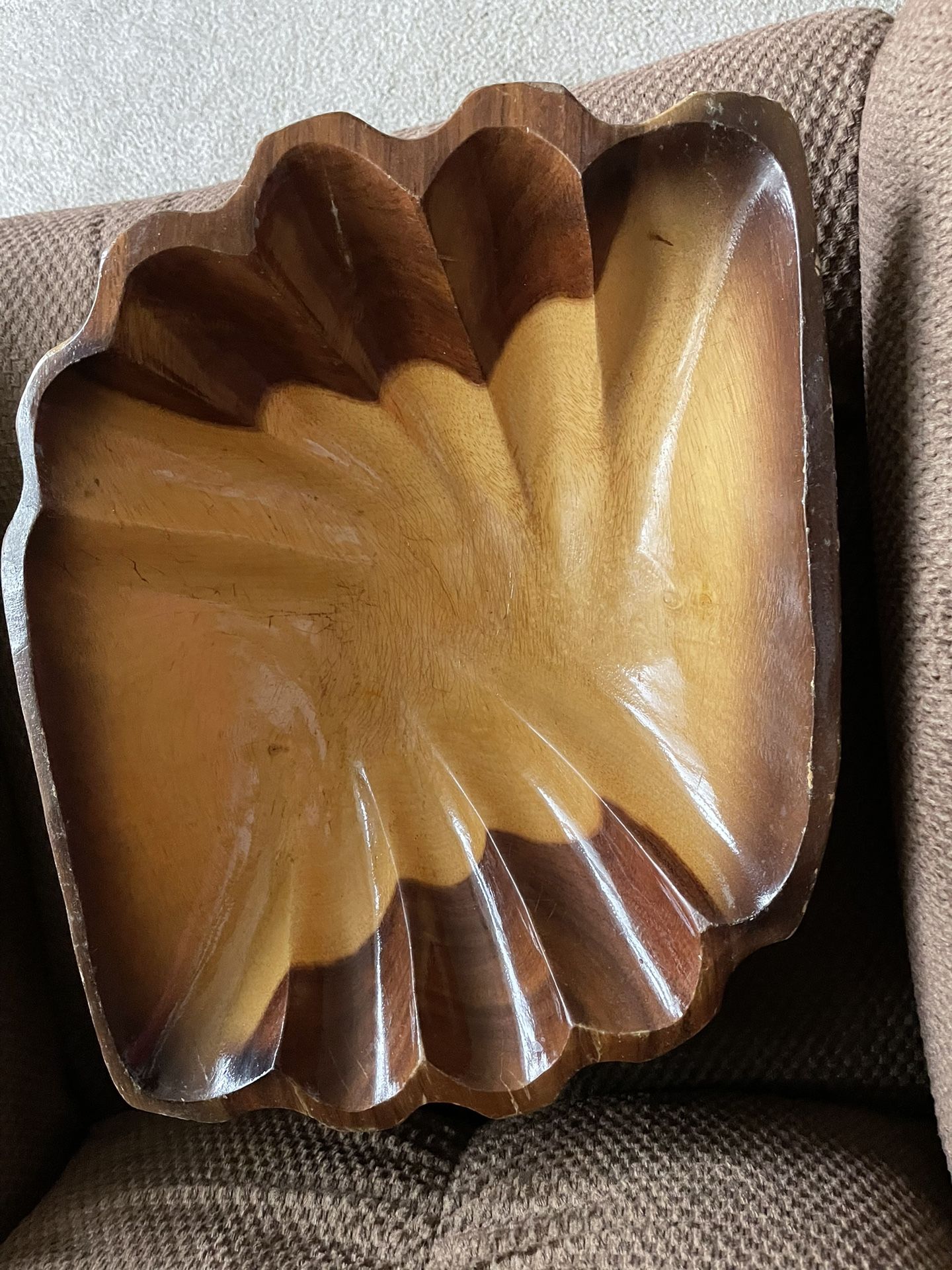 One of a kind, classy wooden bowl, made in Mexico. Serve your salad or other cold foods in this hand carved wooden bowl, with a classic hard finish. Wipe clean without soaking. Measures 12” x 14”