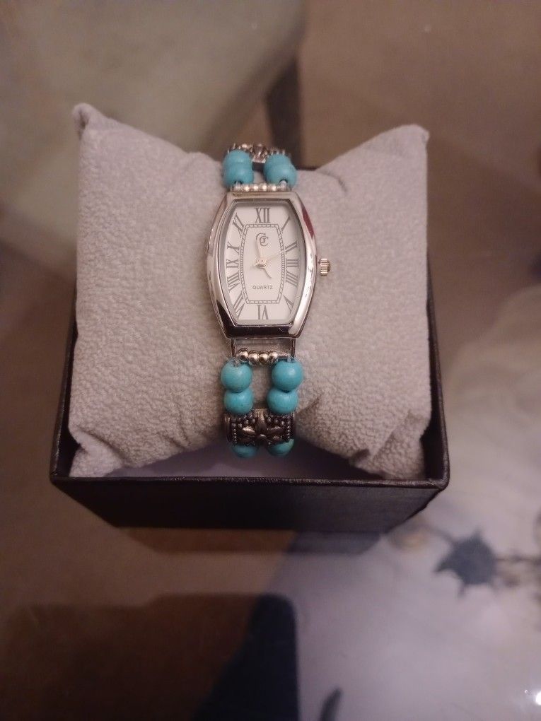 Brand new in the box... turquoise watch with stretchy turquoise bead band. $15 takes it!!!