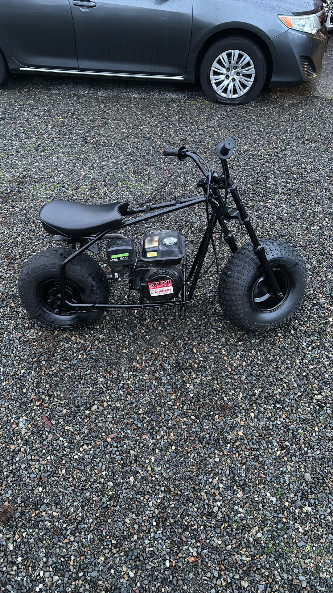 Mini bike Pros goes 60 has compression Cons need new carburetor OBO and trades