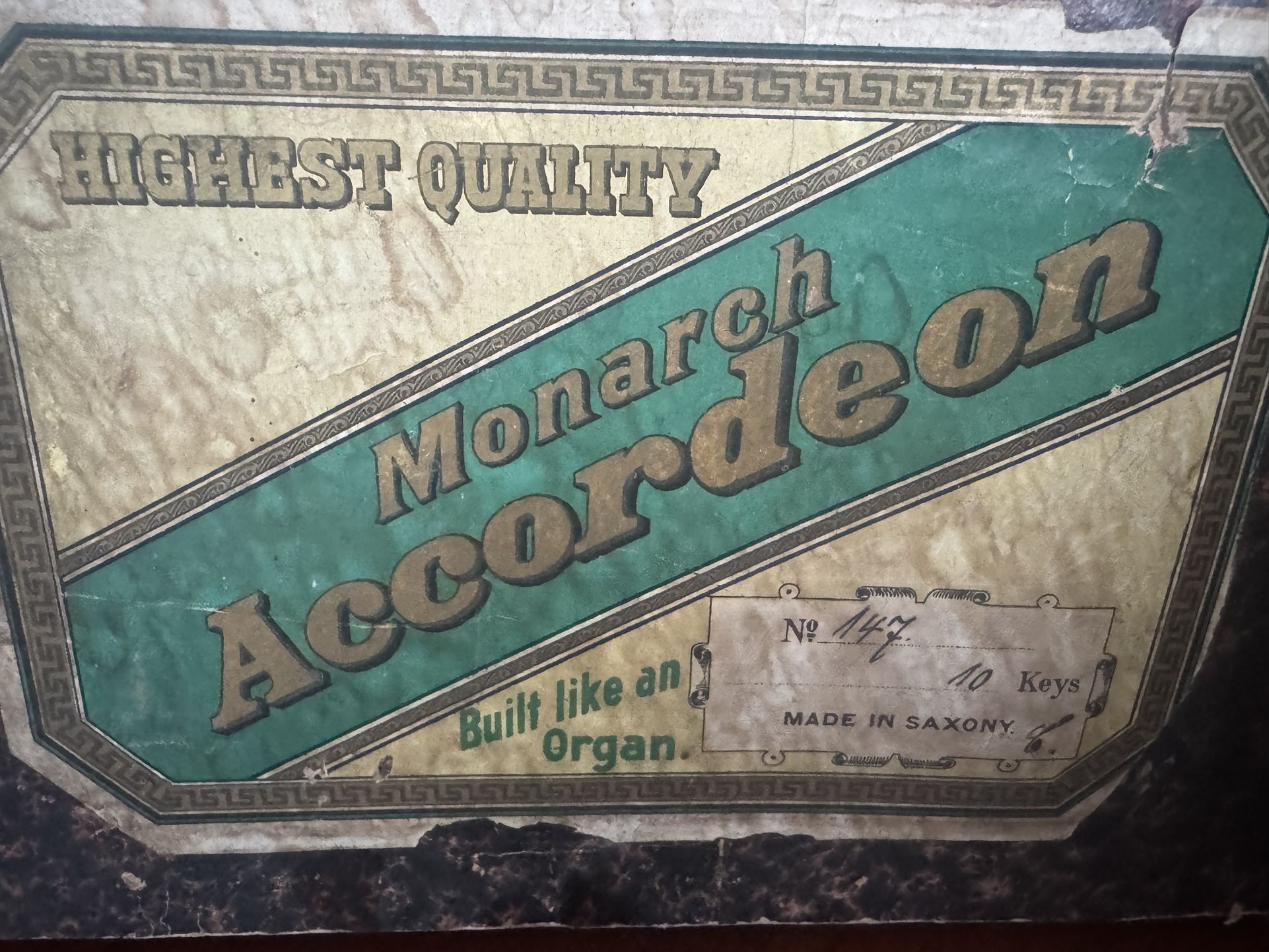 Made in Saxony Germany, It has Steel Reeds and 4 button stopper its a single row 10 keys on one side. Comes with an original box numbered #147 and a instructional booklet on how to learn how to play. Impossible to find one its so rare. In good working condition. A family heirloom close to 100 years old..