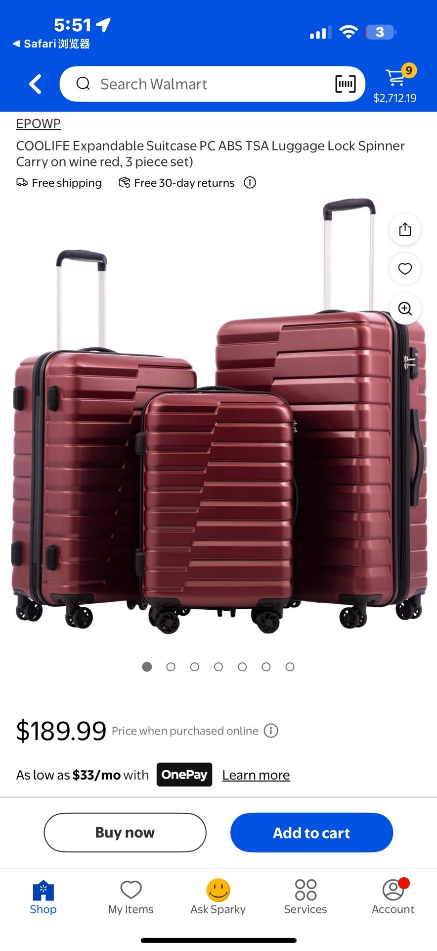 COOLIFE Expandable Suitcase PC ABS TSA Luggage Lock Spinner Carry on wine red, 3 piece set)