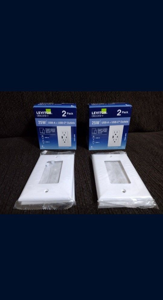 Leviton decora usb-a and usb-c power outlet. Both brand new never opened. Bought more than I needed and they have been sitting around. 4 outlets and 4 covers. Remember paying about $120 for all of this and I'm only Asking $80. Thank you