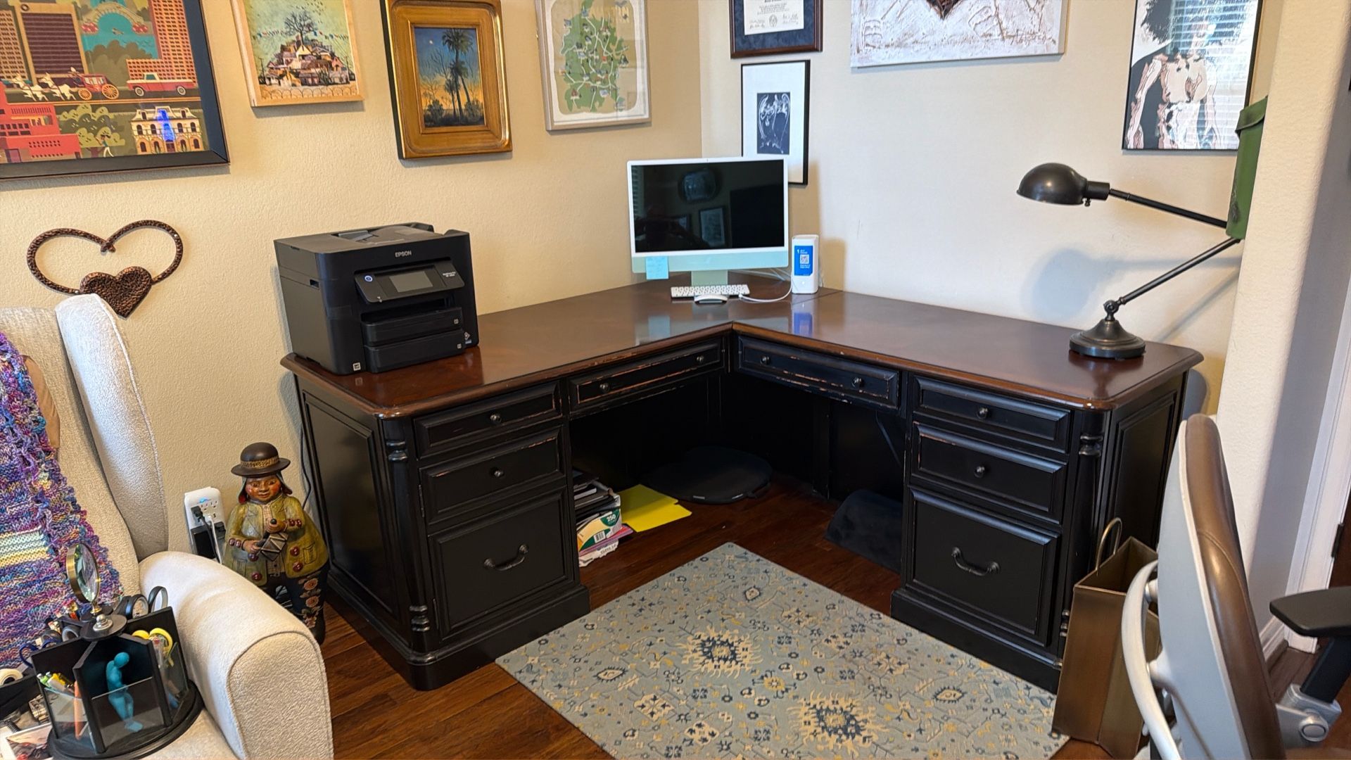 H 30” L 66x72. Lots of storage space. Distressed wood front. Very few scratches on top. Very solid and heavy.