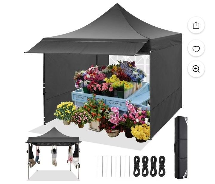 10x10 ft Canopy with Extended Awning, Heavy Duty EZ Pop up Folding Canopy Tent with Roller Bag, Rainproof&Sunproof Awning Gazebo Shelter for Party Eve