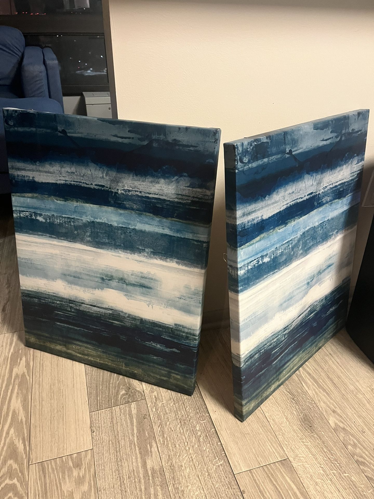 24 inches wide. Great condition and adds to a home or office space. Two hooks are on the back for hanging