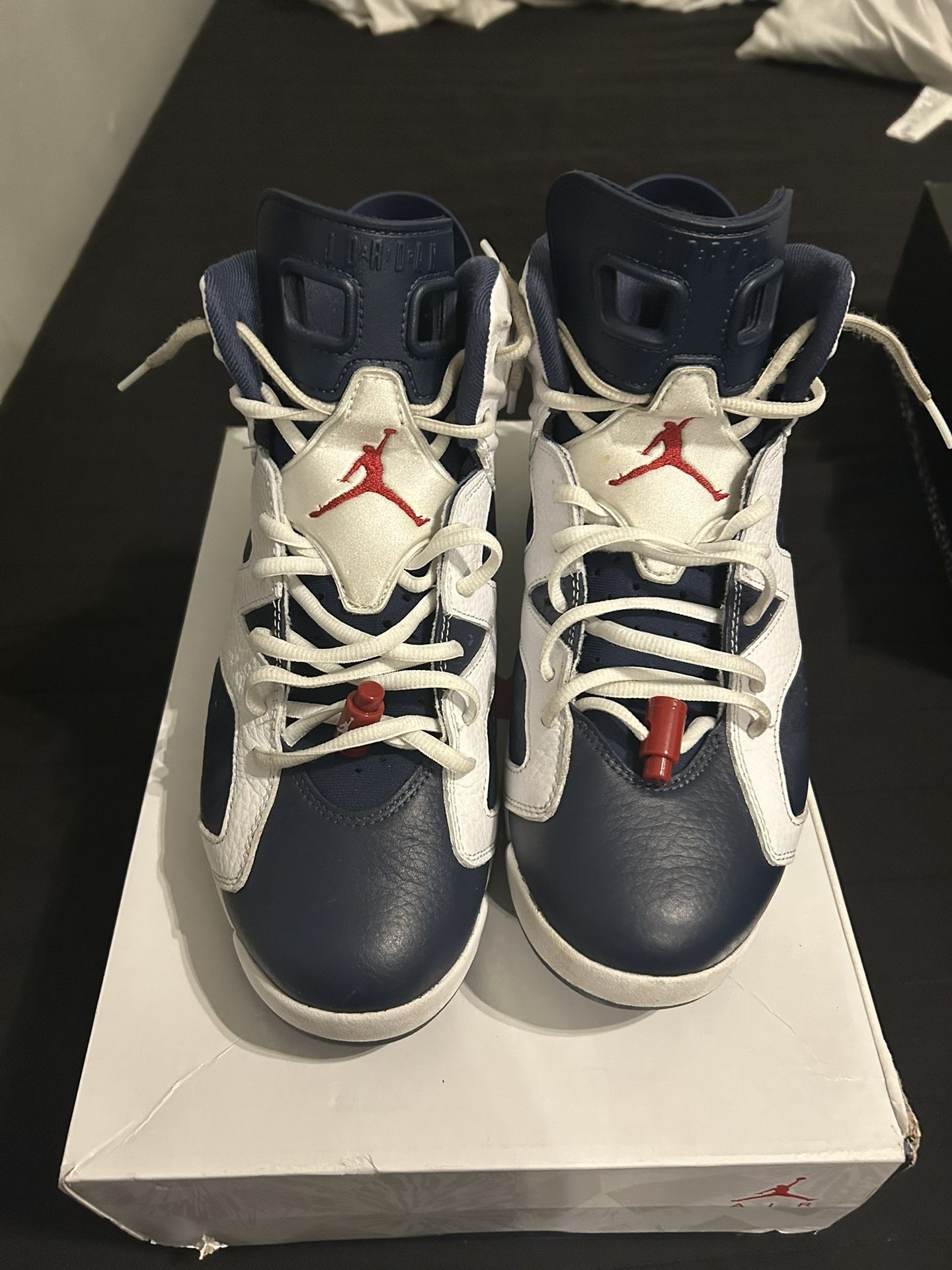 1. Air jordan 6 Retro Olympic’ 2024 2. Jordan 6 Retro Midnight Navy 2024 both worn 1-2 times. Still in good condition Both size 10 Come with both boxes.