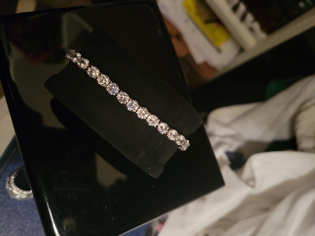 Make a statement with this beautiful tennis bracelet. Pictures give it no justice. Looks like a 7000 dollar diamond bracelet. Beautiful quality. WATCH RING AND BRACELET PACKAGE DEAL 300$