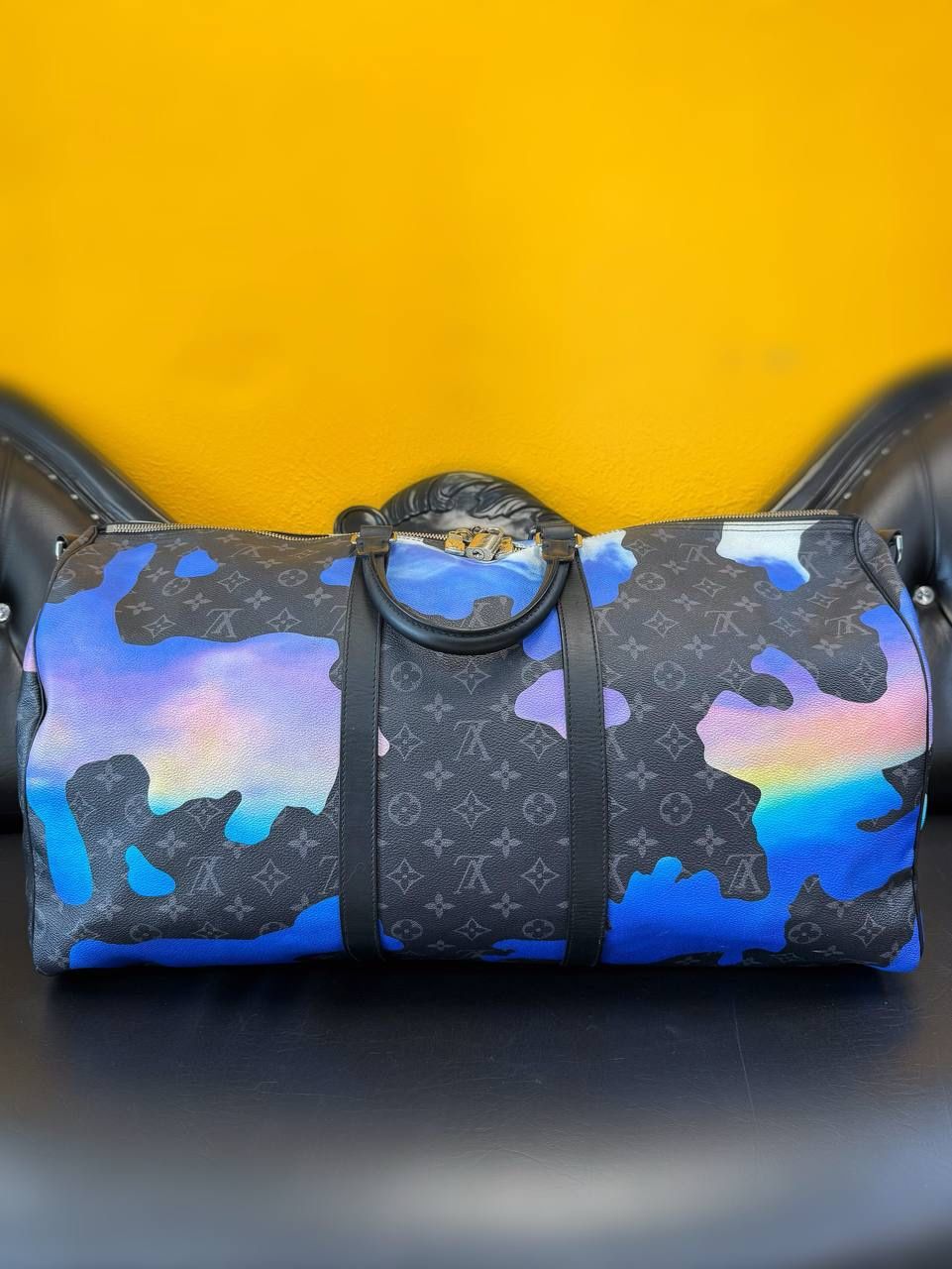Bag is in very good condition, clean outside and inside. Only has small scratches and invisible stains in some places. Also, has some small scratches on a hardware, everything else is perfect. Size of main bag: 23”W x 12.5"H x 10”D. Bag comes with adjustable shoulder strap. The Monogram Eclipse Sunrise collection was introduced under the direction of Virgil Abloh. Limited edition!!! Would be a nice investment to your collection. What you see is what you will get, the best choice for you! Perfect for a gift! We buy Hermes, Chanel, LV, Dior, Gucci, YSL, Prada. Do layaway in VIPAWN Boca Raton 🔥💎💸