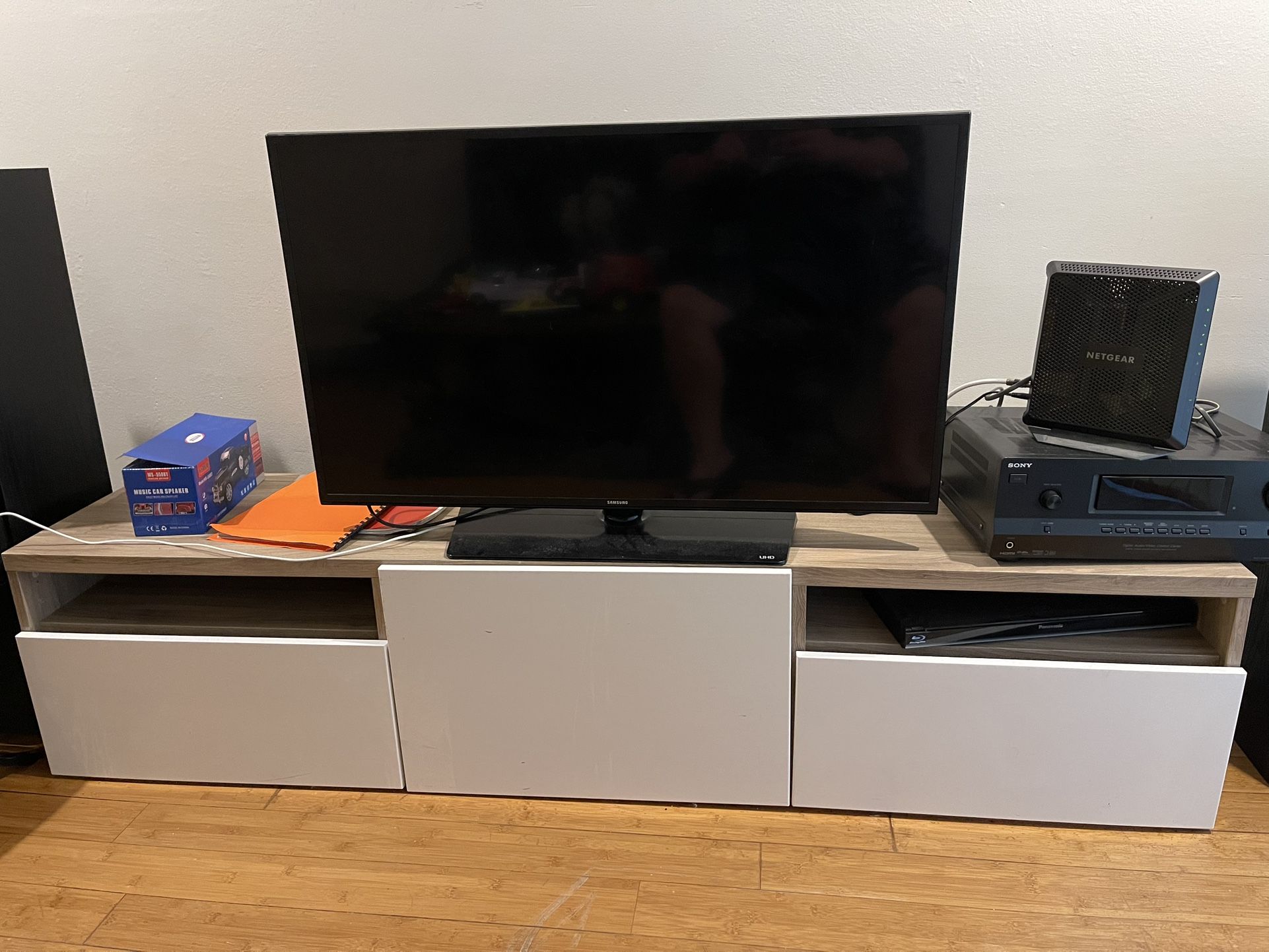 Stand with multiple compartments is 6 feet wide, 15 inches deep and tall
