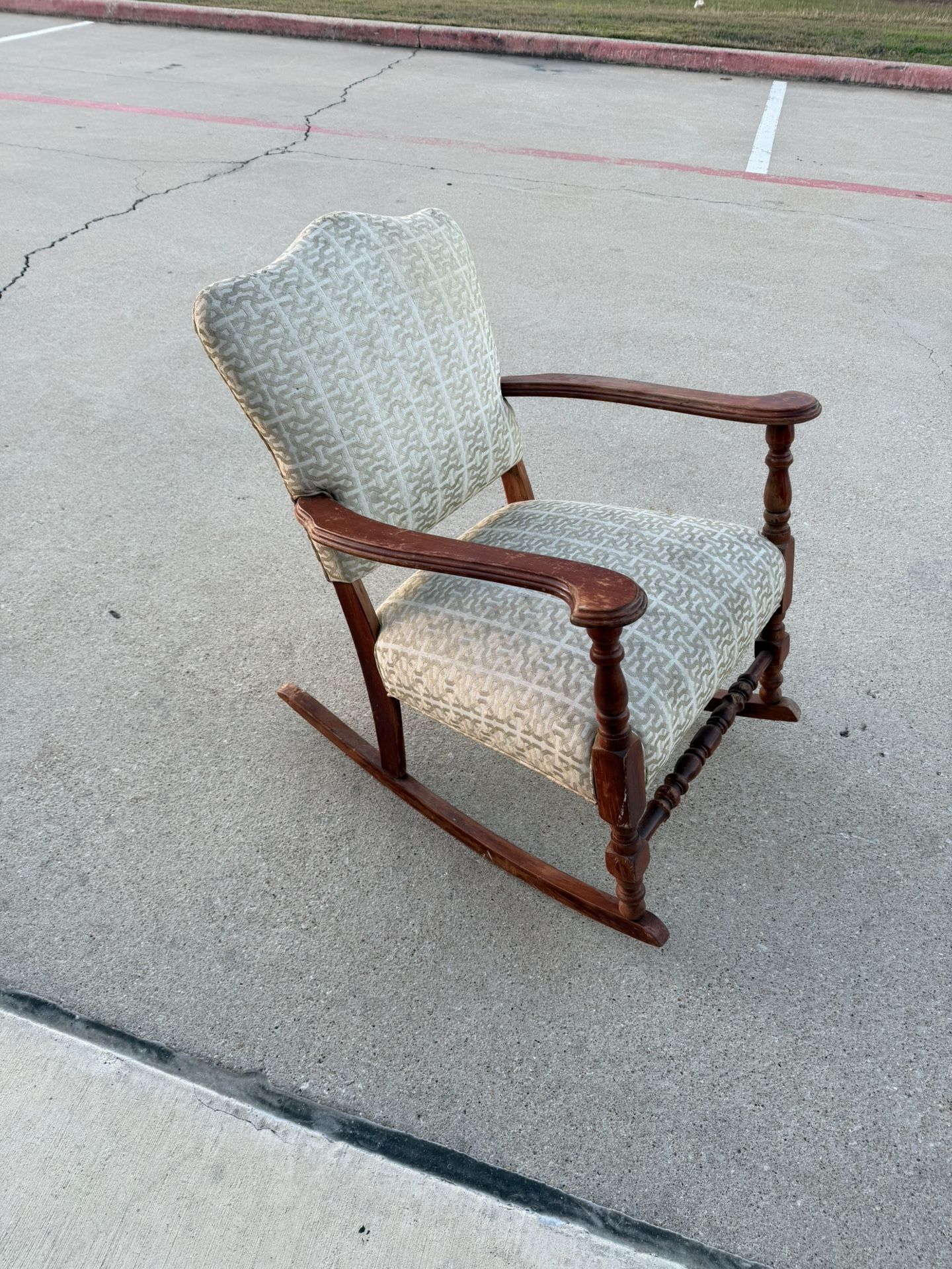 Vintage Wooden Rocking Chair with Upholstered Seat & Back