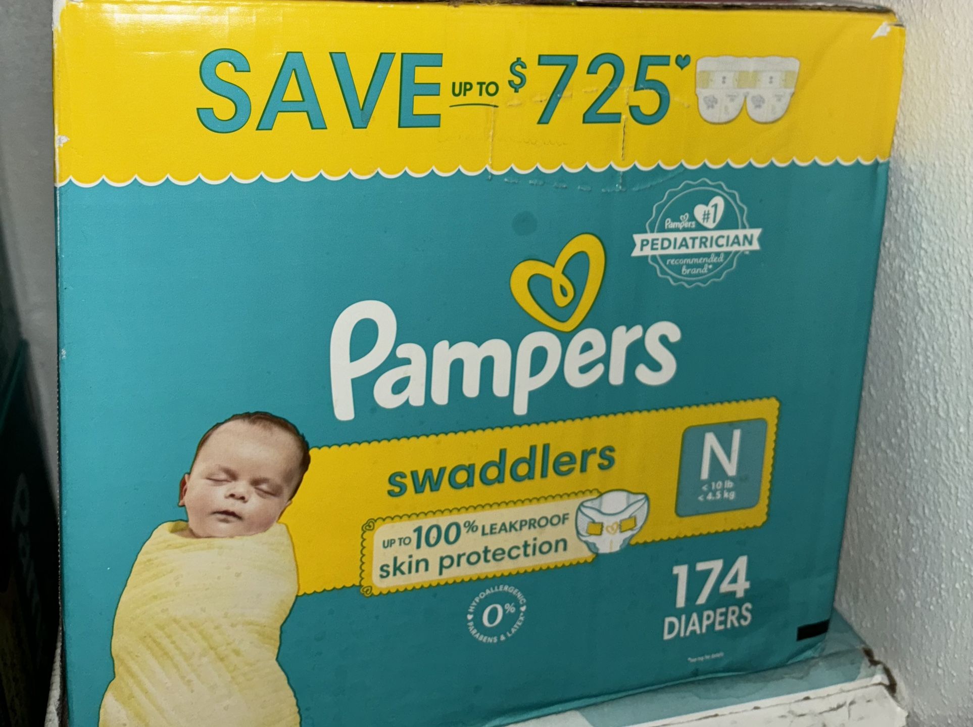 Brand new box of diapers. Never opened, never used. Pampers brand, 196 count size newborn.