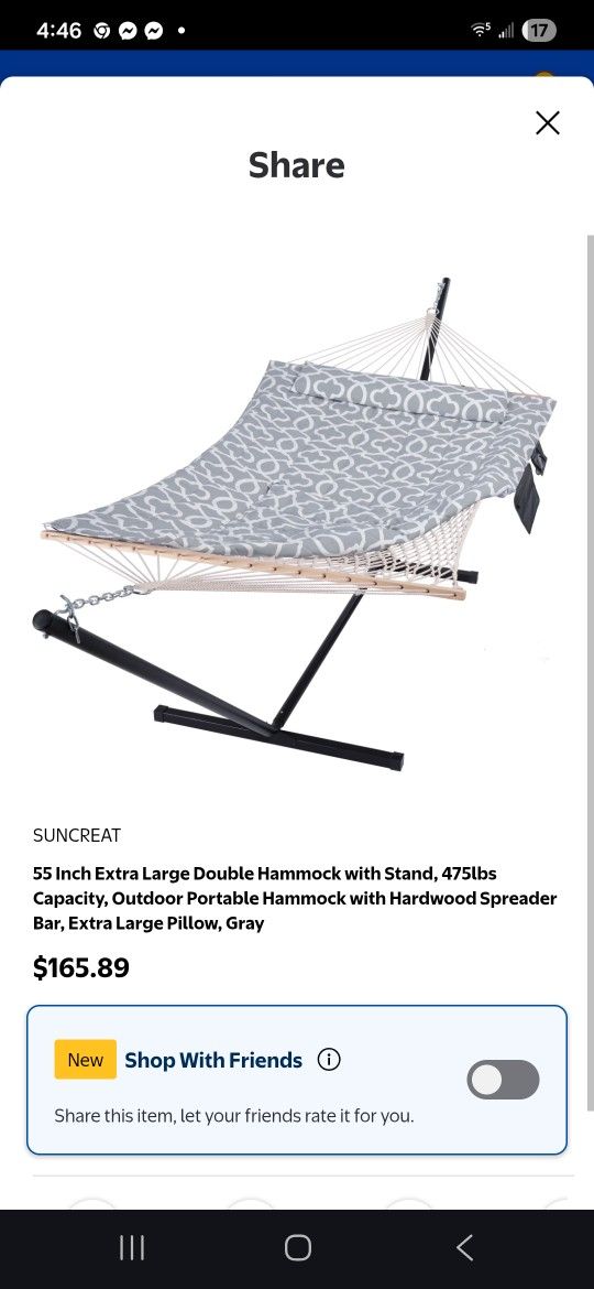 55 Inch Extra Large Double Hammock with Stand, 475lbs Capacity, Outdoor Portable Hammock with Hardwood Spreader Bar, Extra Large Pillow, Gray