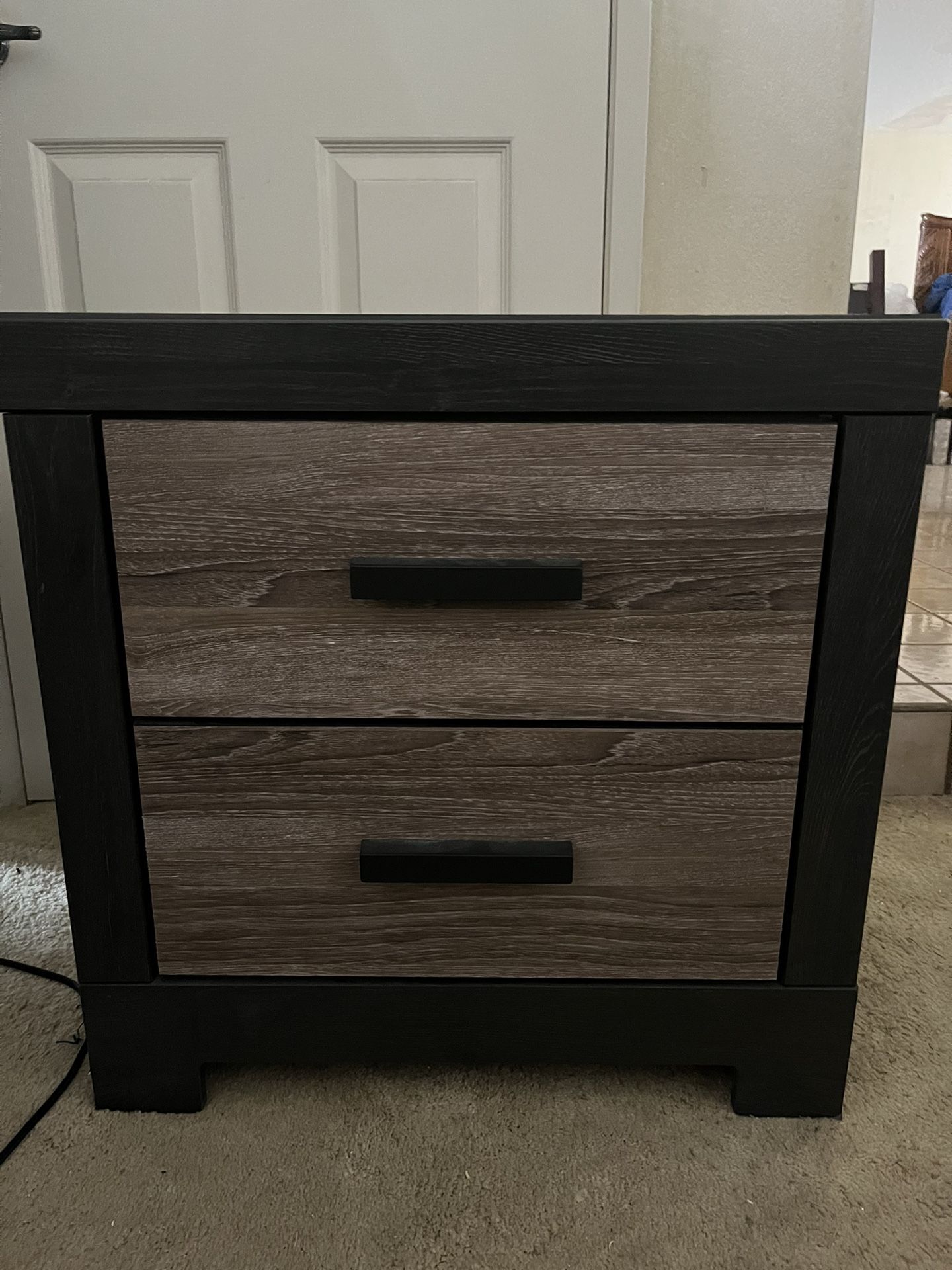 Heavy Dark Wood Nightstand. Measurements 24” W 15.5”D 24.5”H