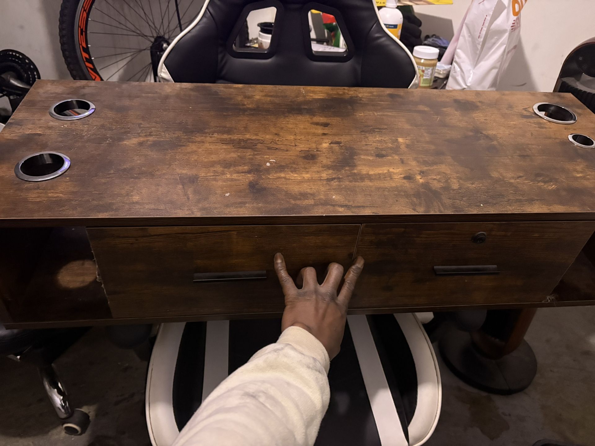 Used (like new) it’s a little dusty will shine it up for you. But it’s in good condition and all drawers open.
