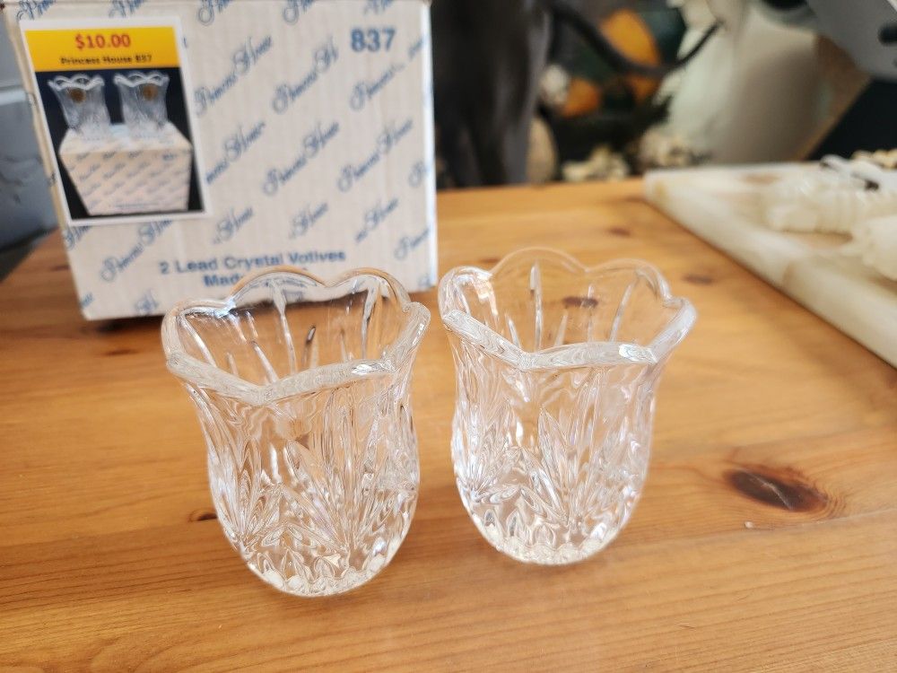 Princess house #837 2 lead crystal votives Brand new, original box, with papers $10